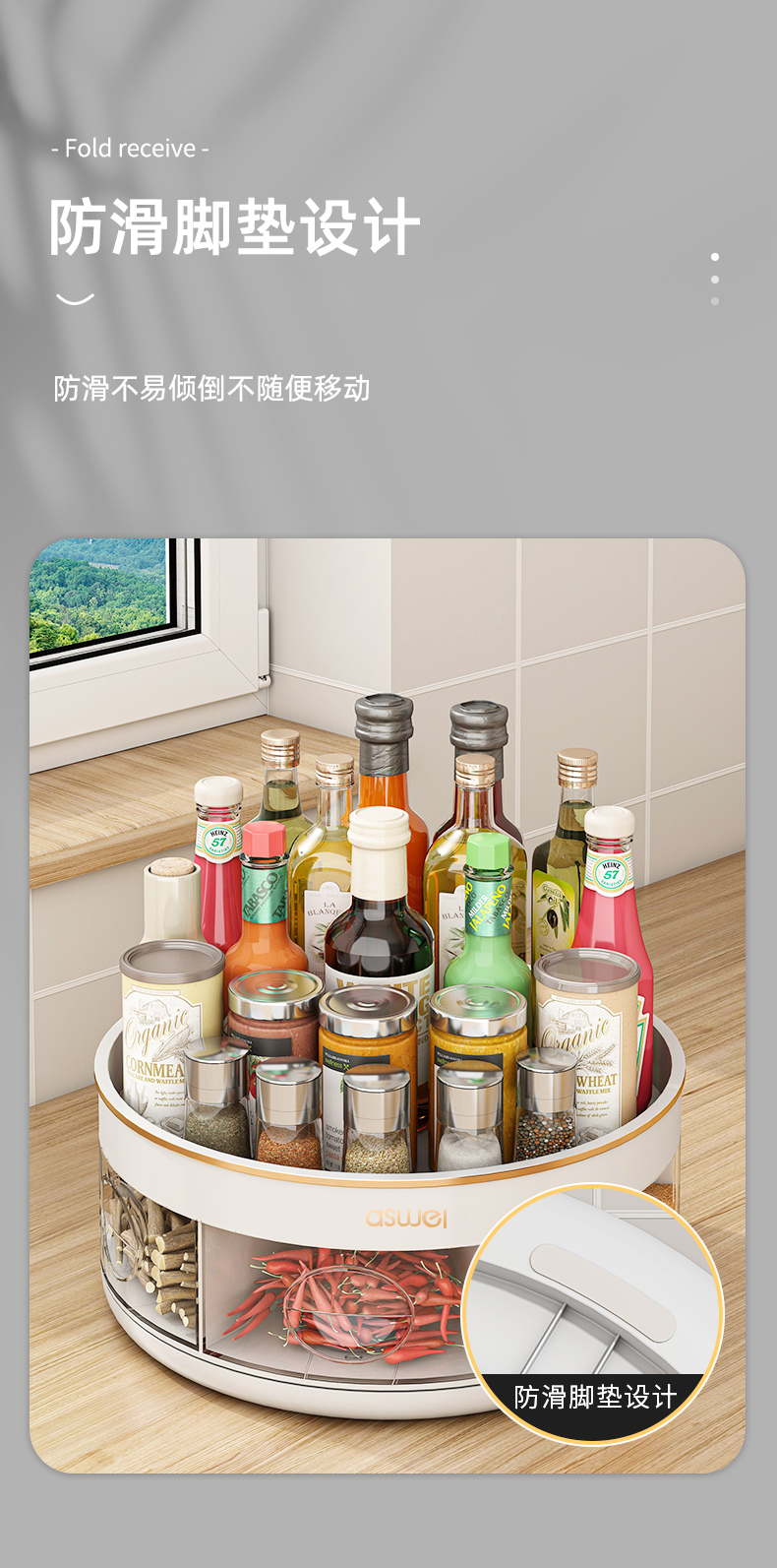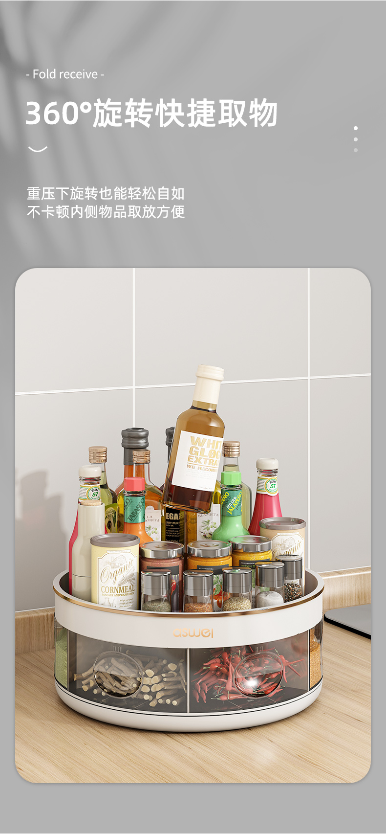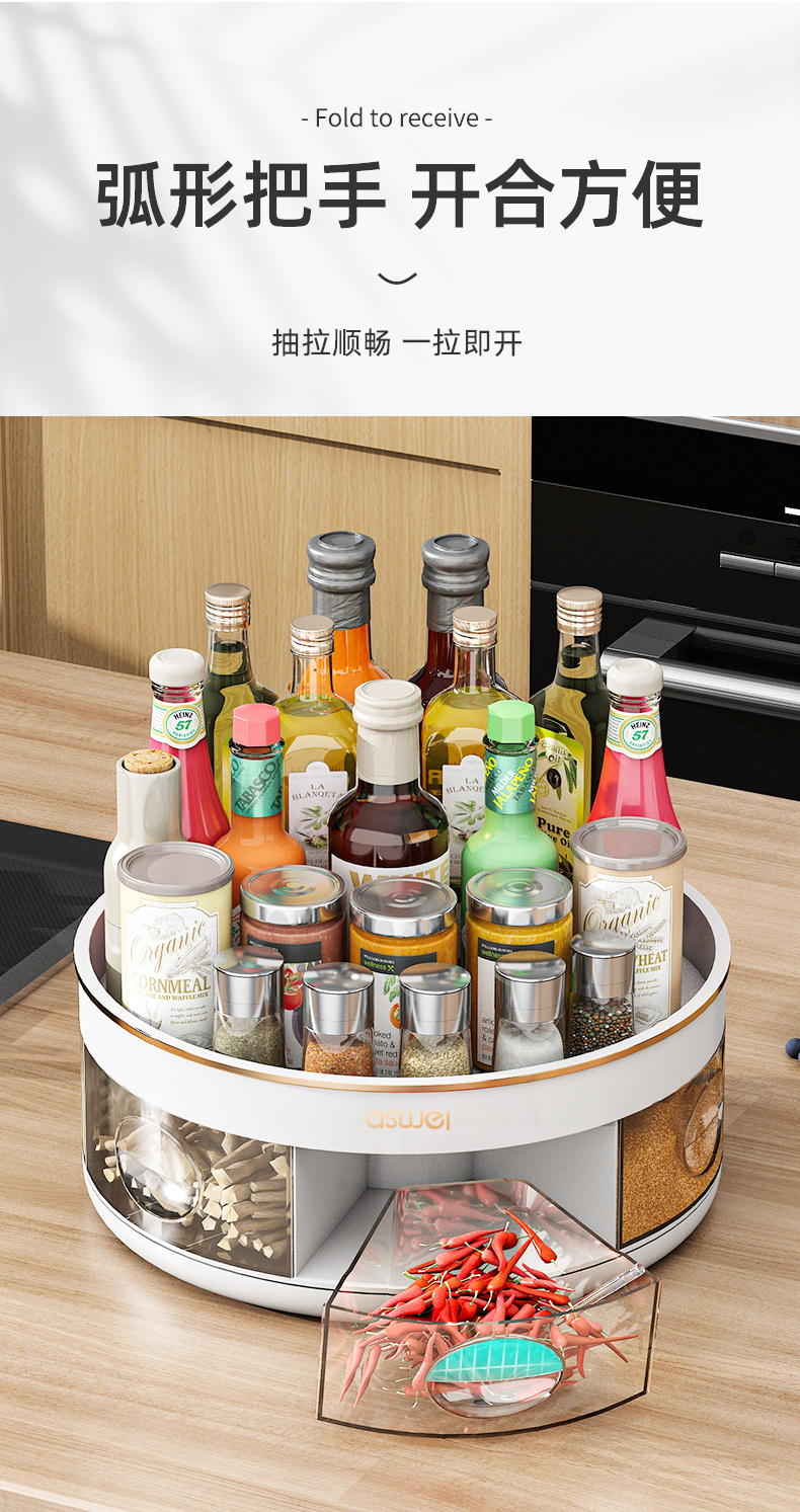 pearl white-rotating seasoning box (divided storage/integrated multi-grid)