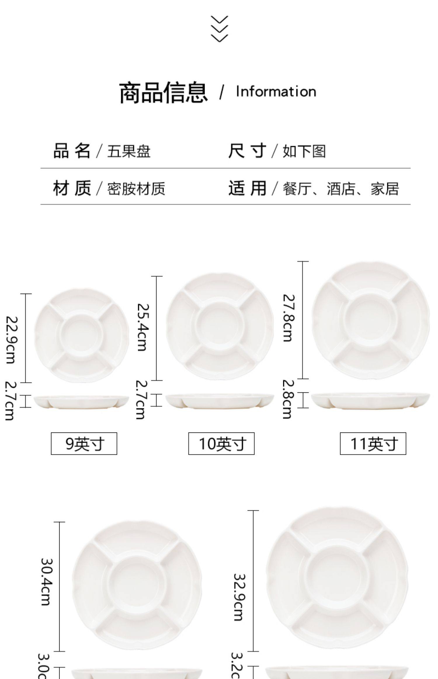 11-inch five fruit plate thickened