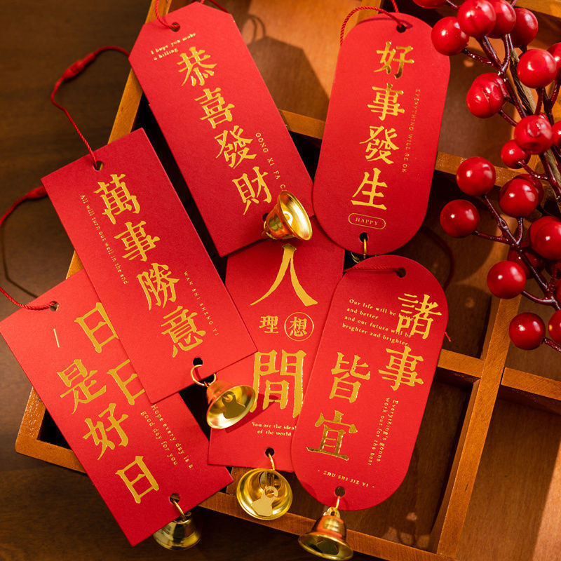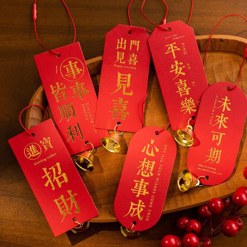 ⚪♦blank wishing card 6 sheets (brass bell + tassel♦⚪