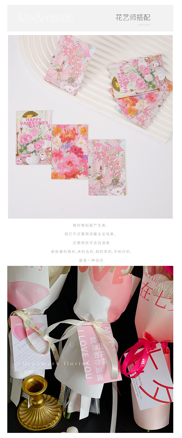 2023 chinese valentine's day [flower card] 60 sheets/bag