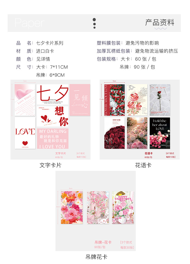 2023 qixi [tag-flower card] 90 sheets/bag