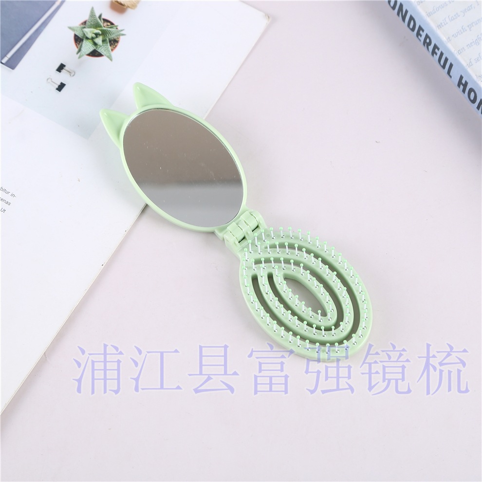 cute small comb portable portable folding with mirror for women only mini dense gear bangs massage one-piece comb