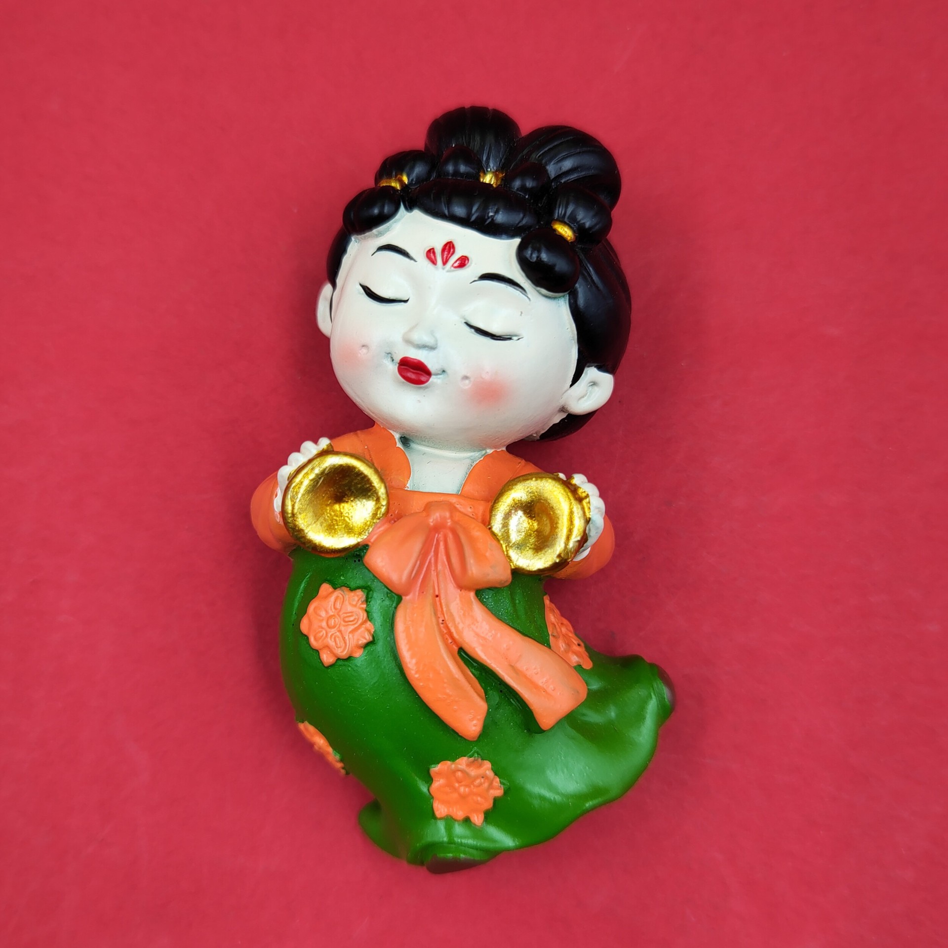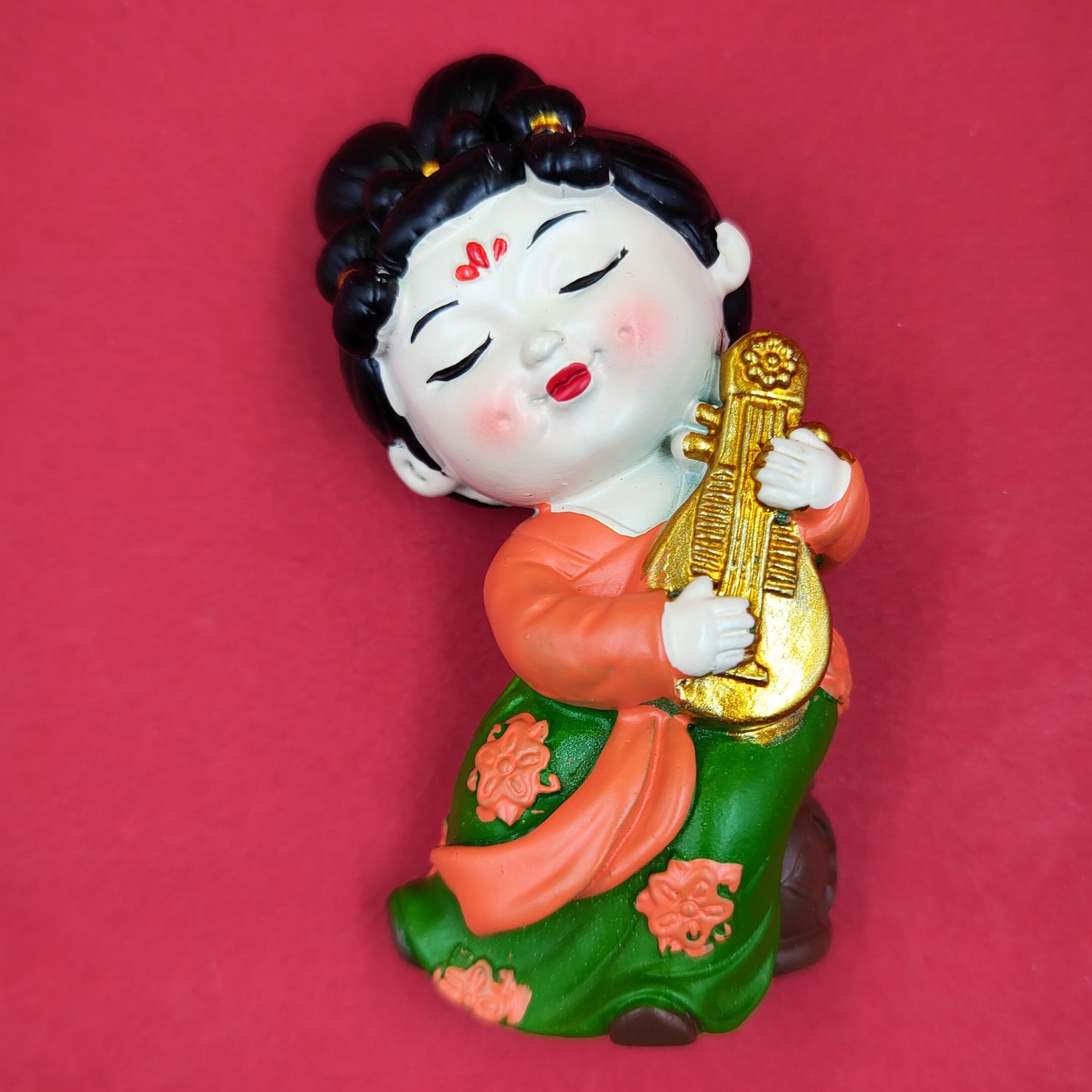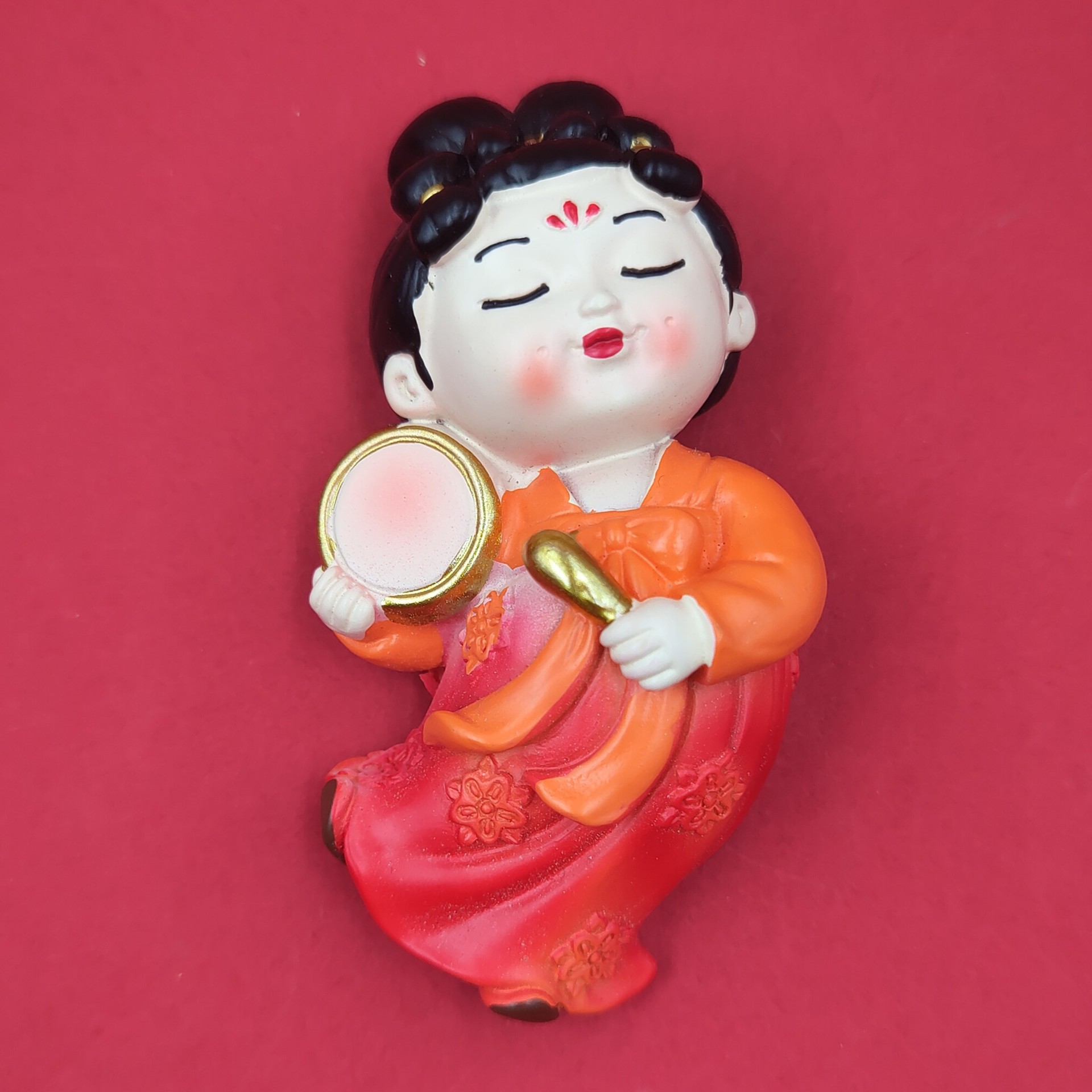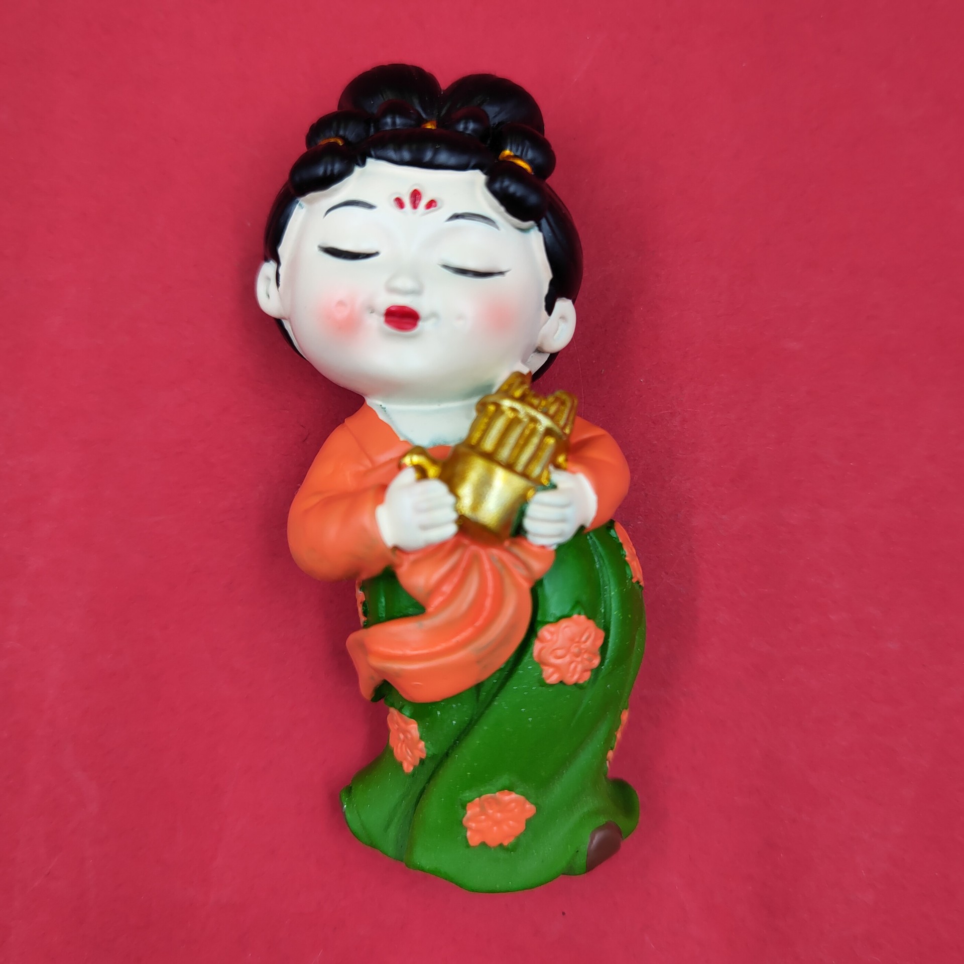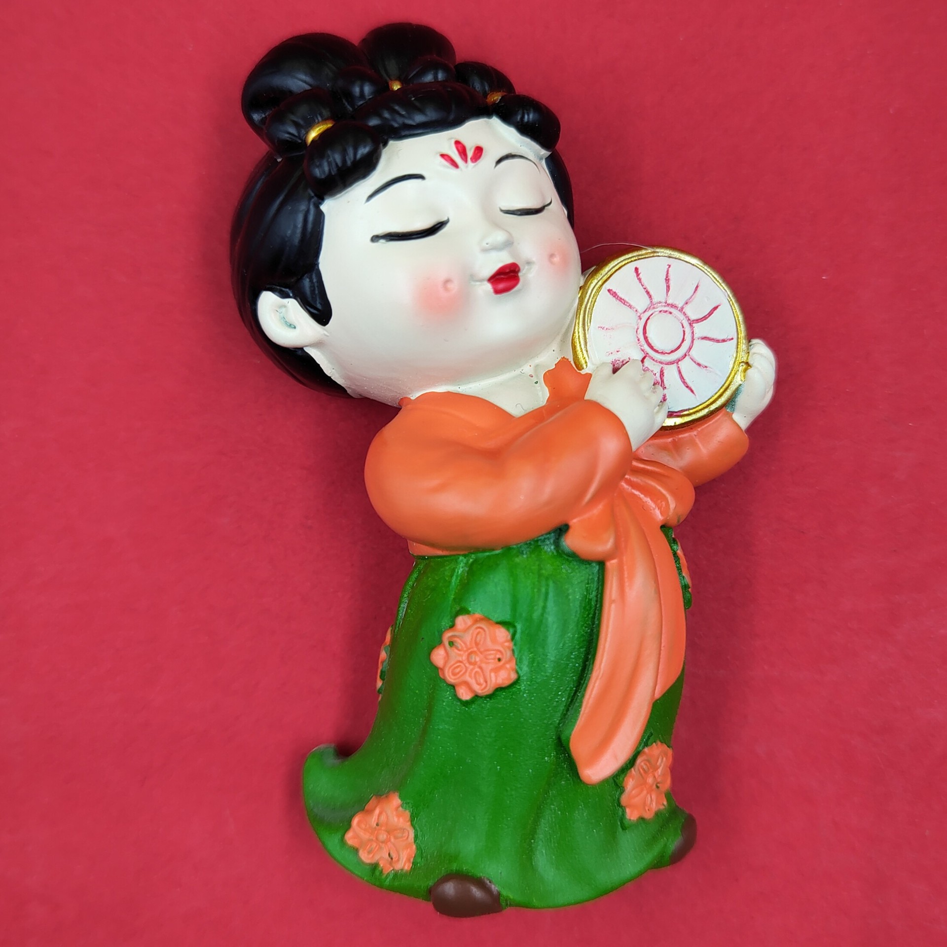 red dress green dress lady holding gong 7cm * 5cm