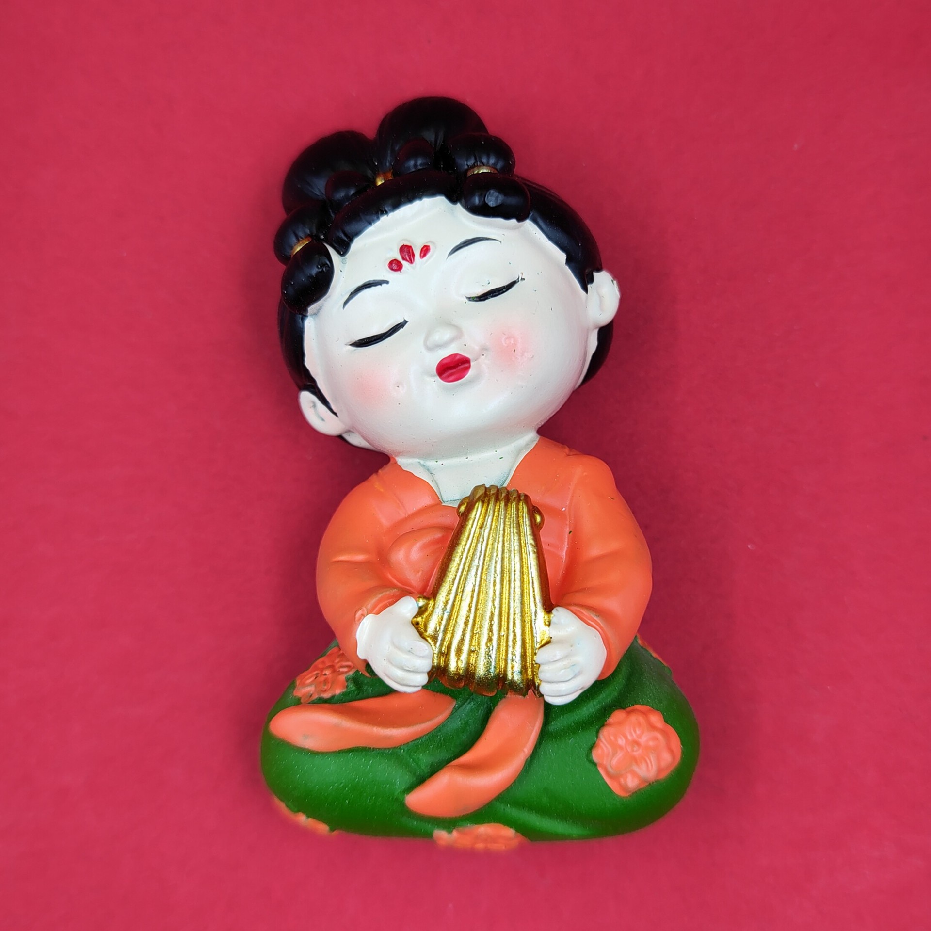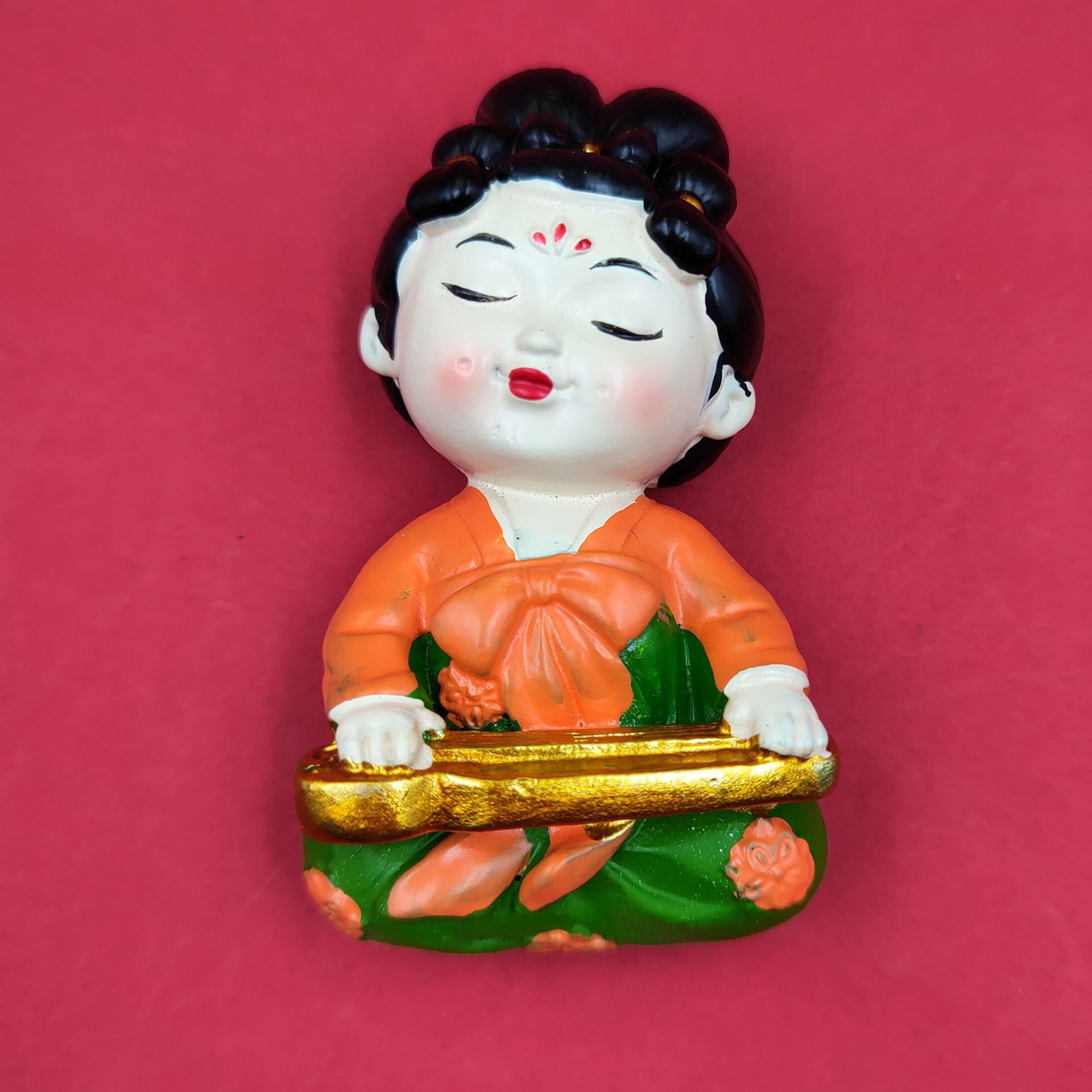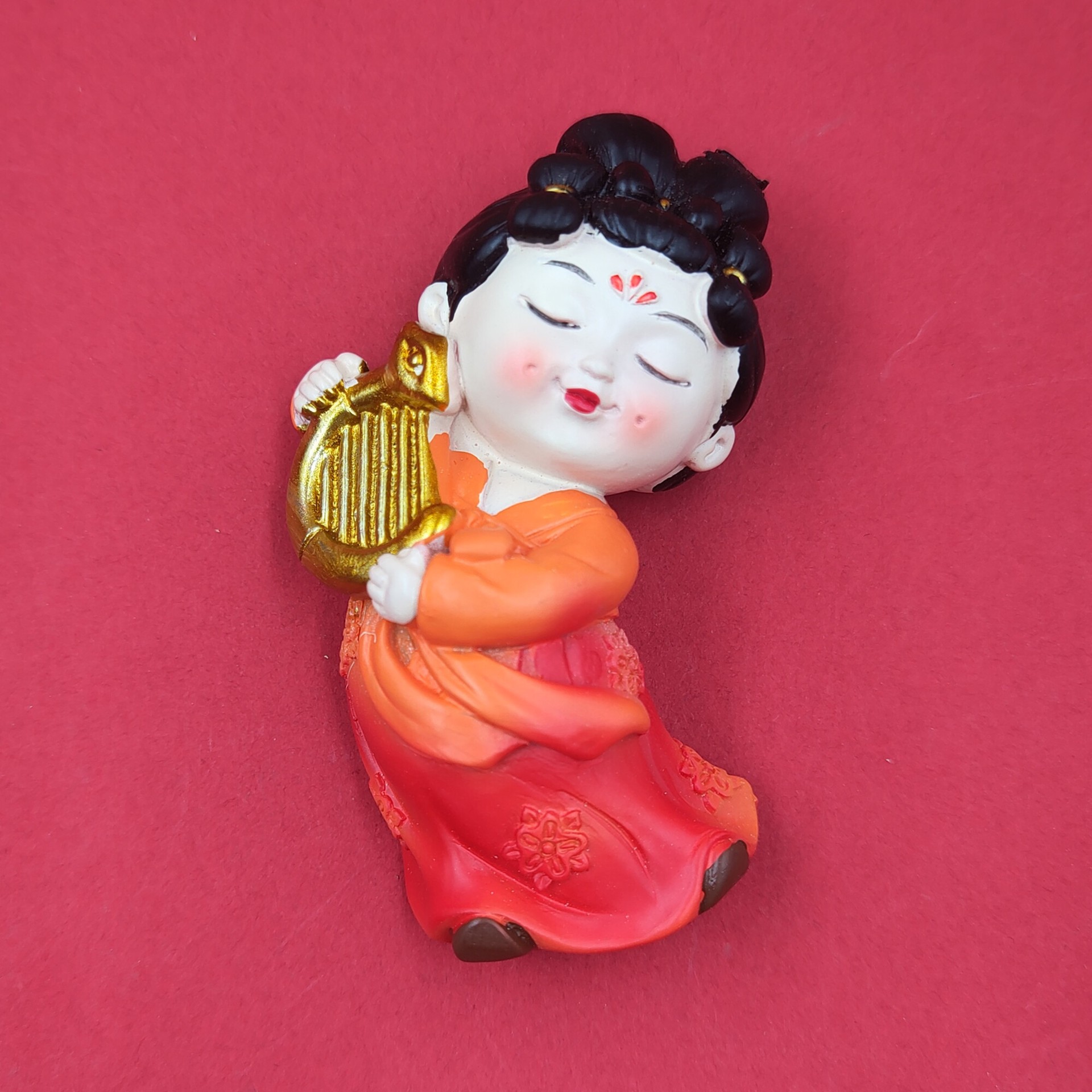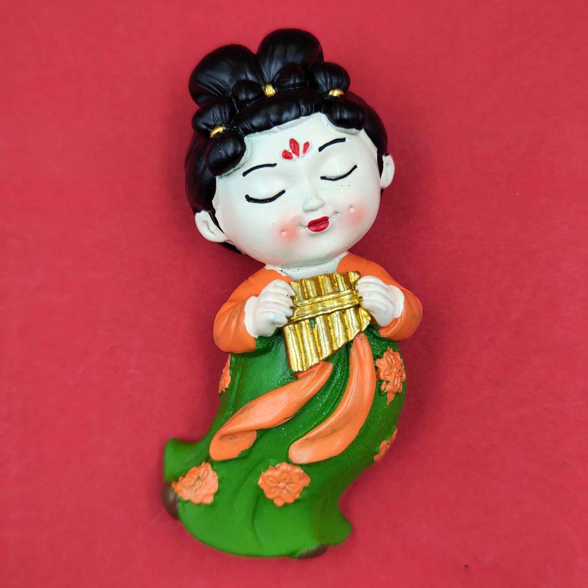 red dress green dress lady holding gong 7cm * 5cm
