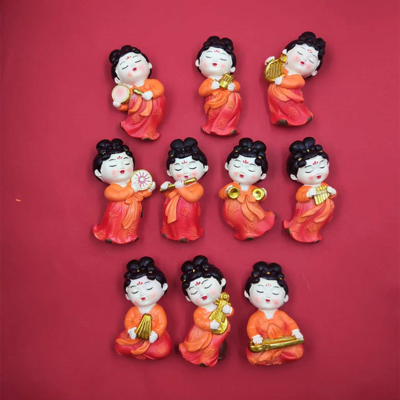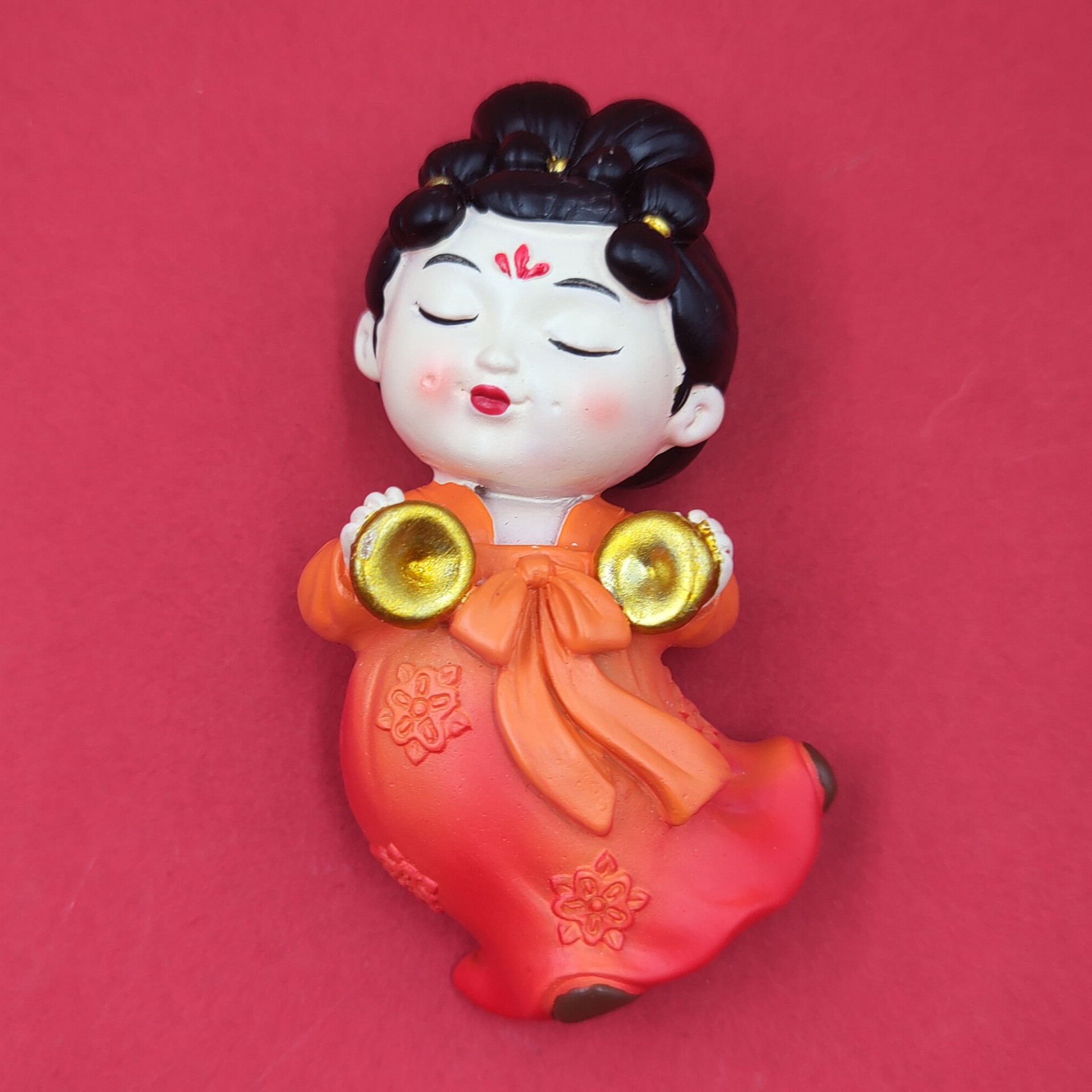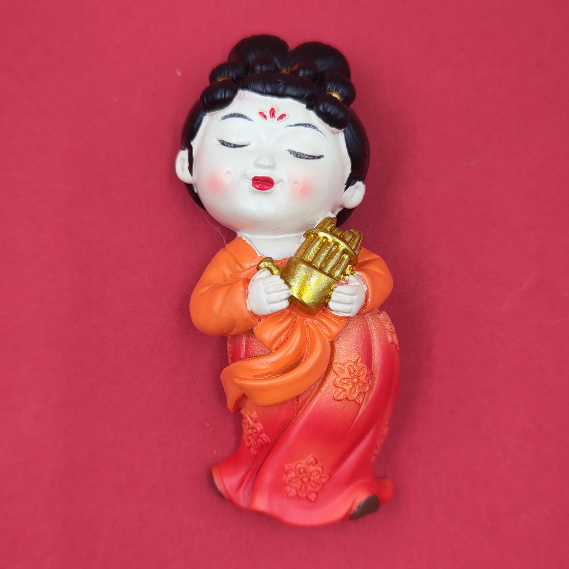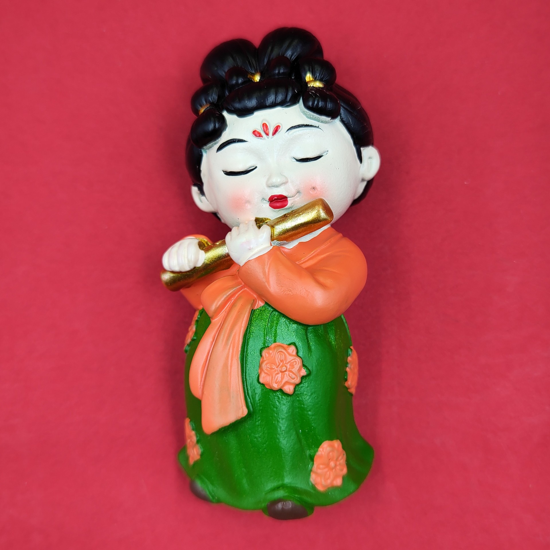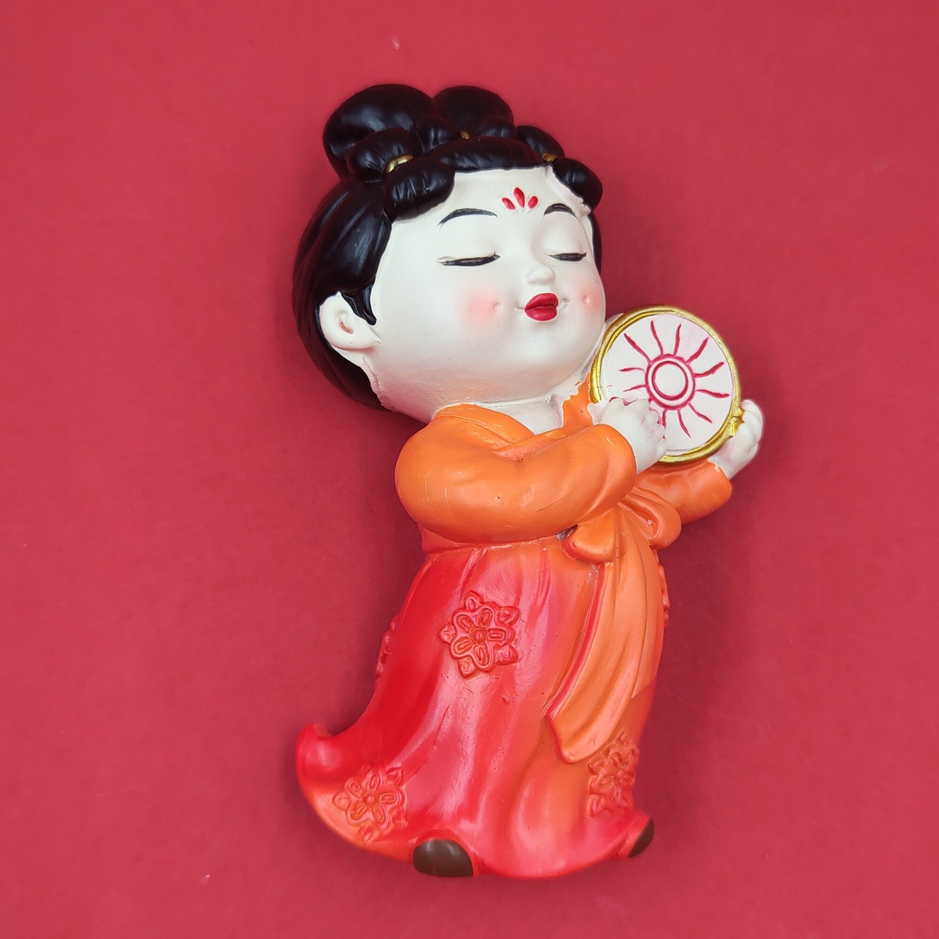 red dress green dress lady holding gong 7cm * 5cm