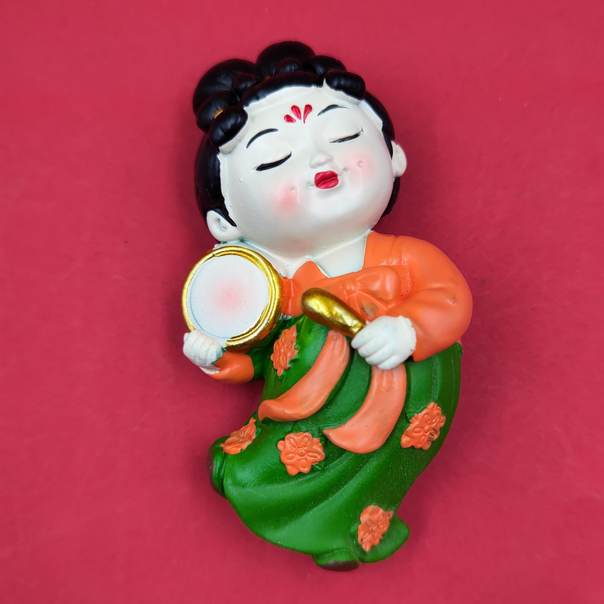 red dress green dress lady holding drum 7cm * 5cm