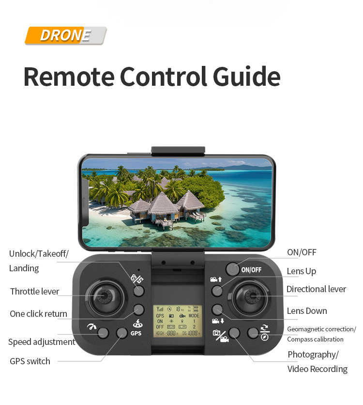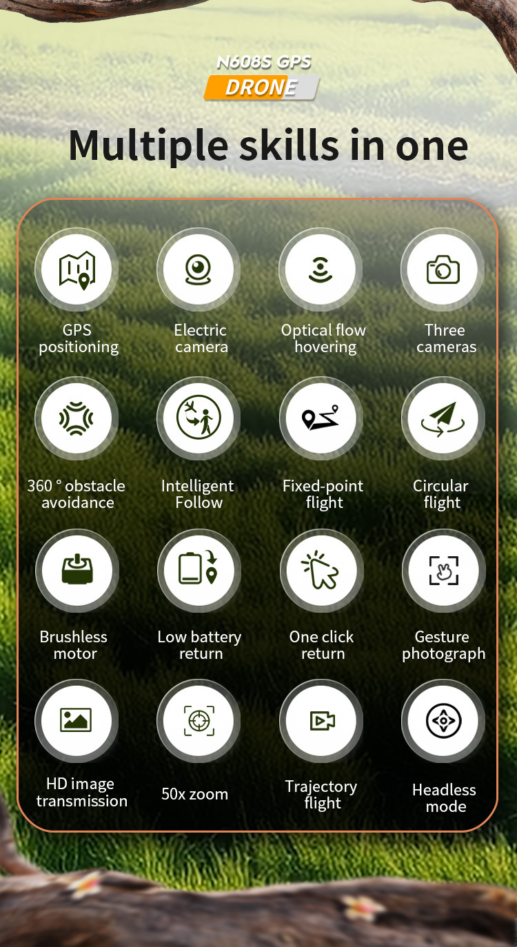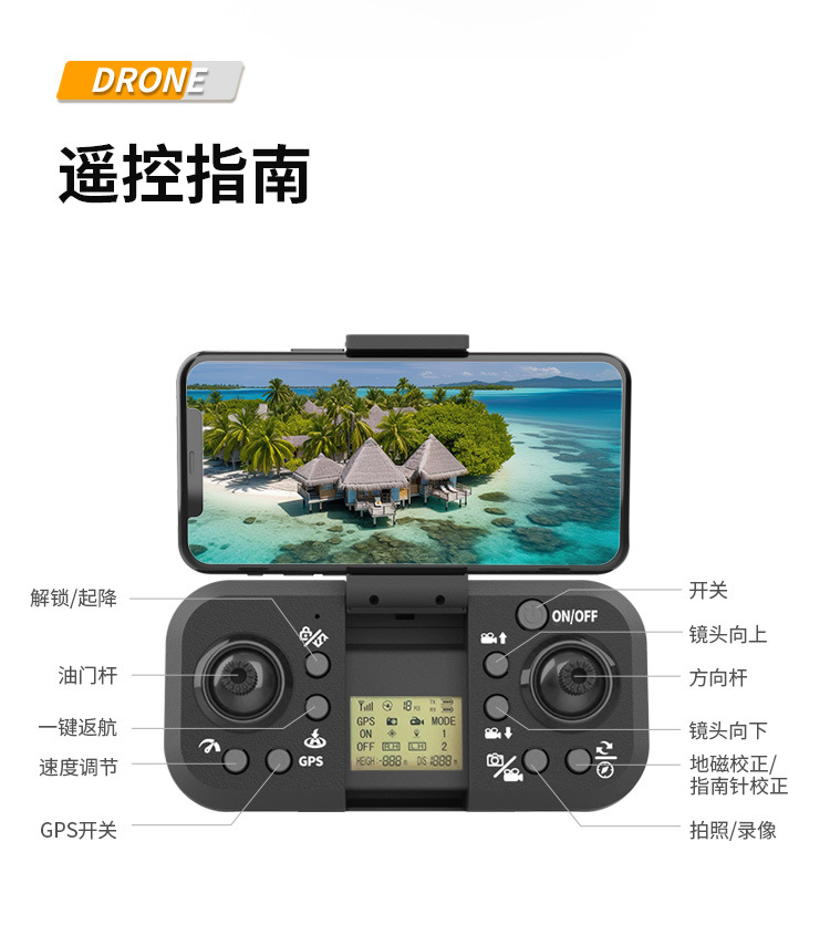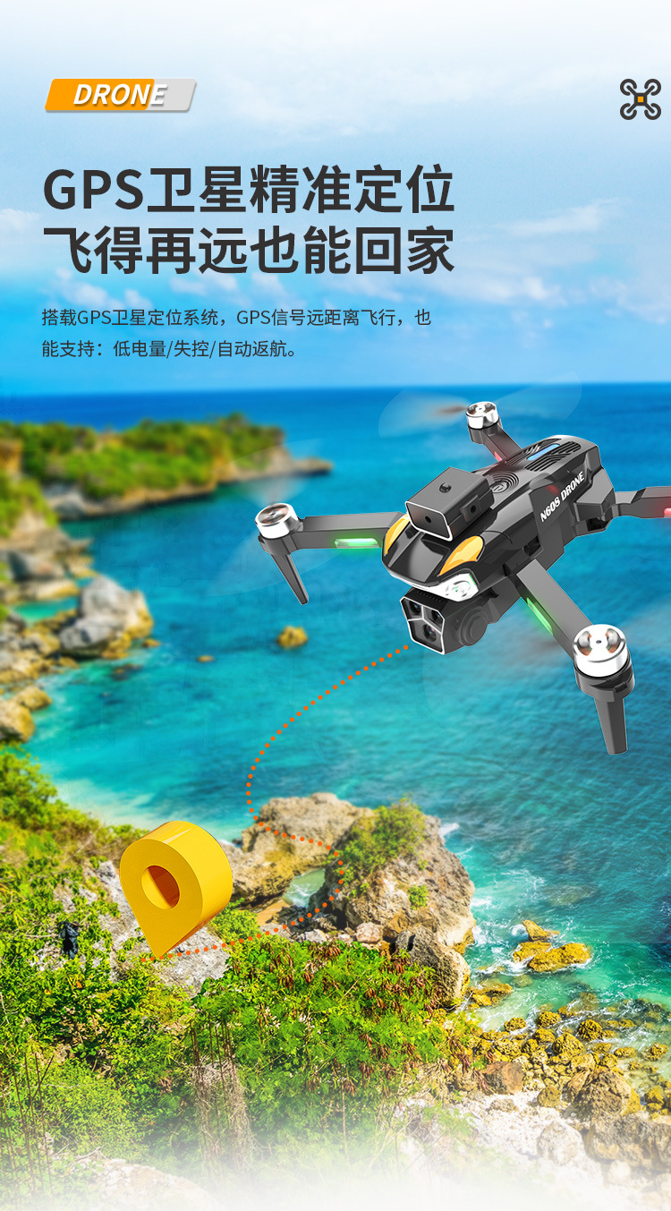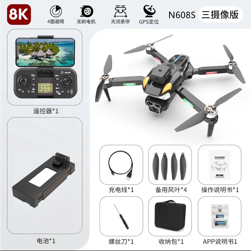 n608s (brushless motor + gps positioning + electrical adjustment three cameras + obstacle avoidance + lcd screen remote control)