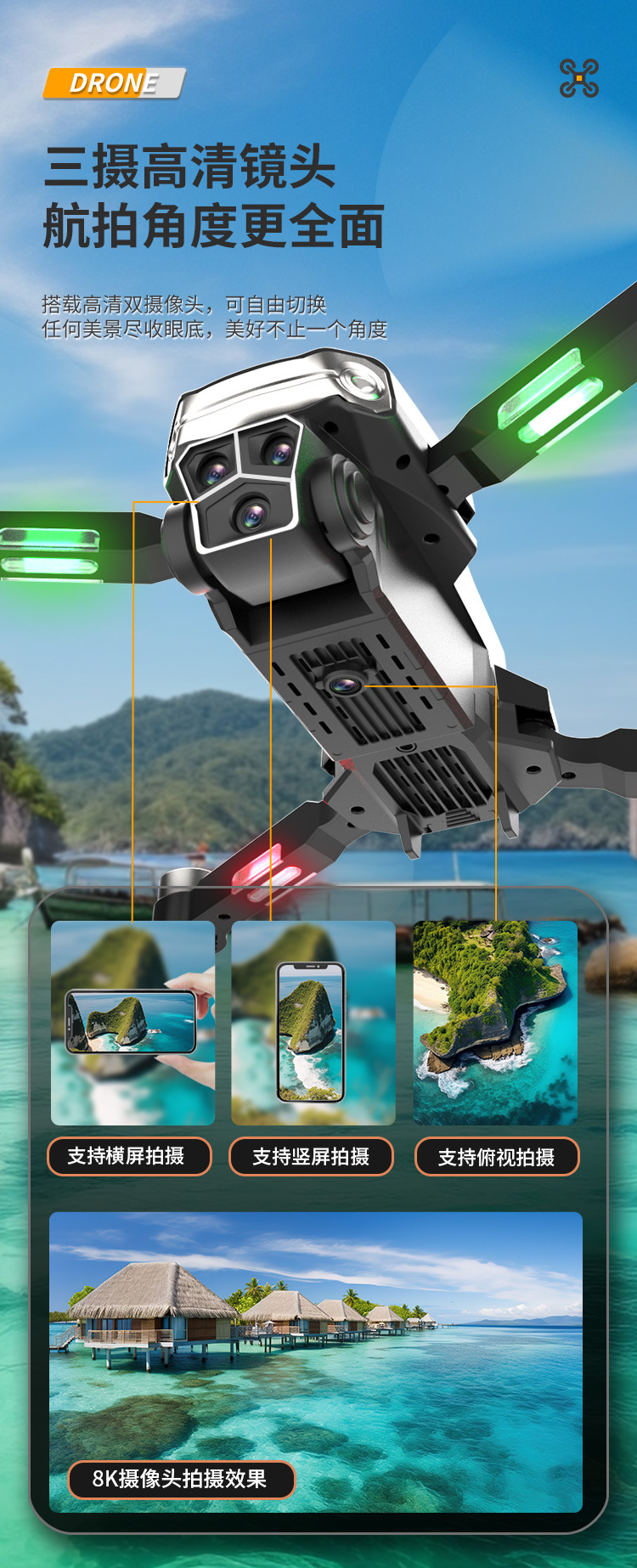 n608s (brushless motor + gps positioning + electrical adjustment three cameras + obstacle avoidance)