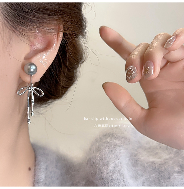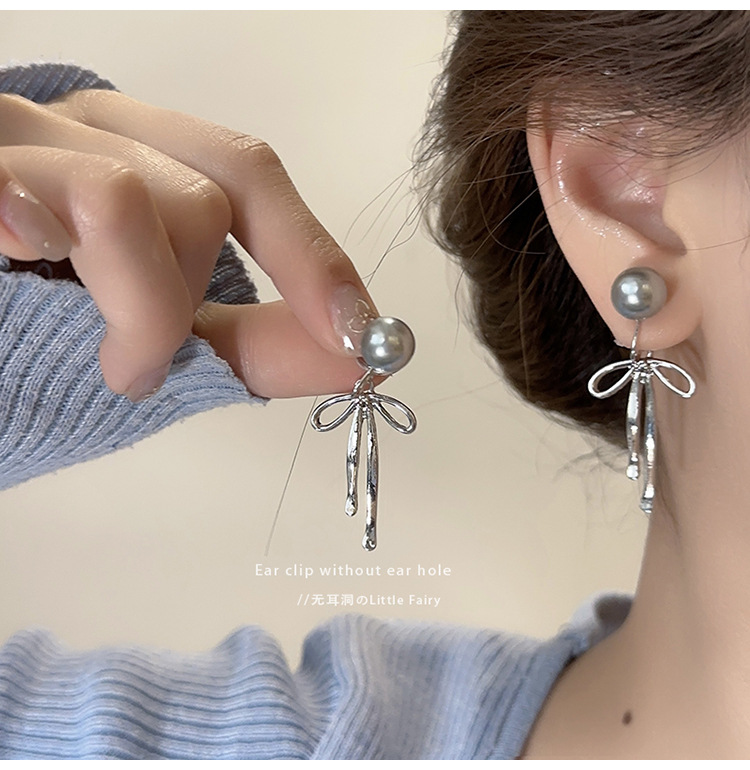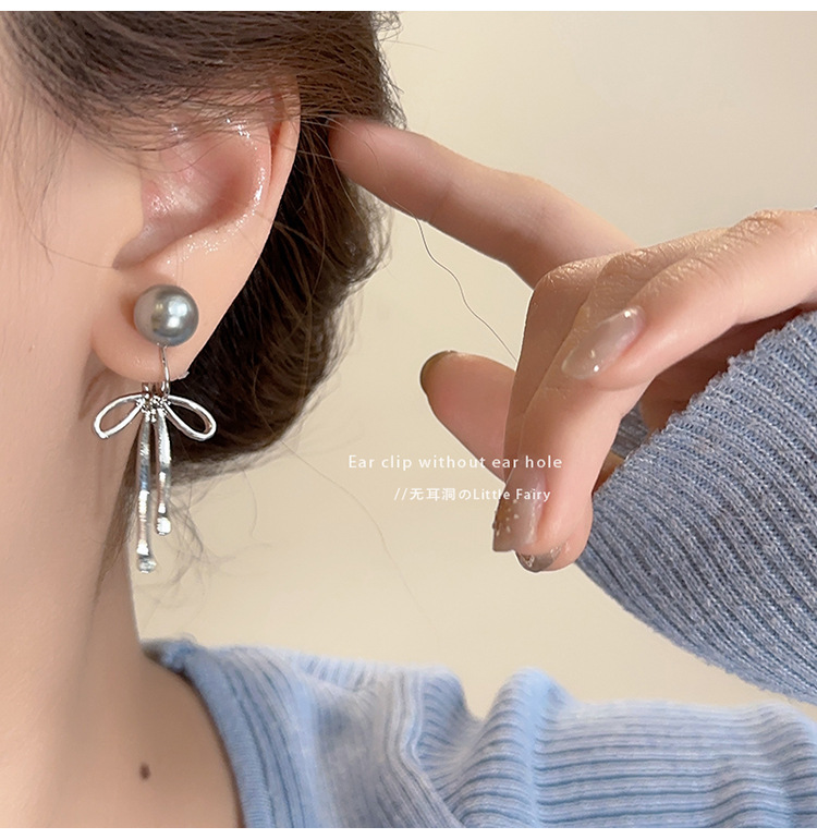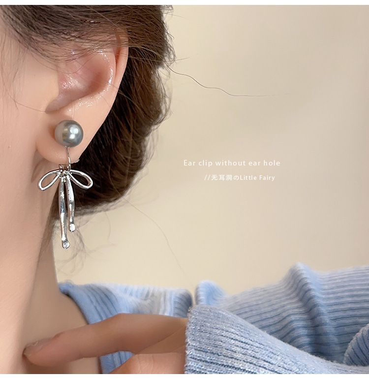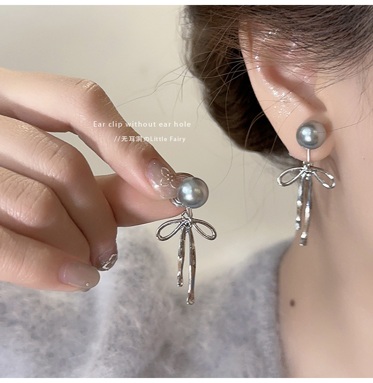 [1335] pearl bow mosquito coil ear clip
