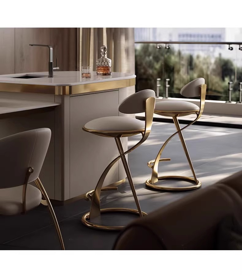 stainless steel brushed titanium + pu leather (sitting height 65cm)