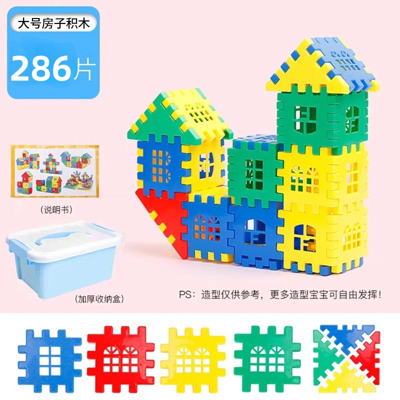 286 pieces of house building blocks [storage box + drawings]]