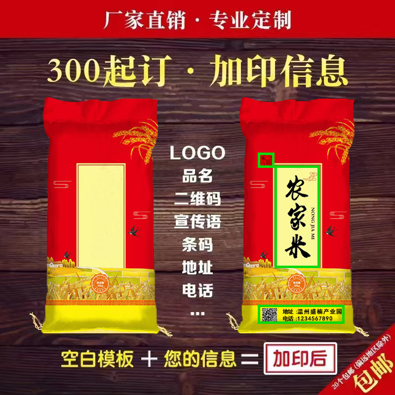 rice bag; transparent 25kg red farm-bred rice
