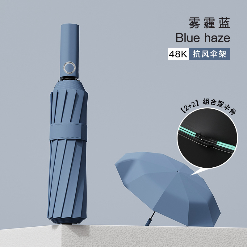 haze blue [flagship double dragon bone] 48-bone reinforced umbrella