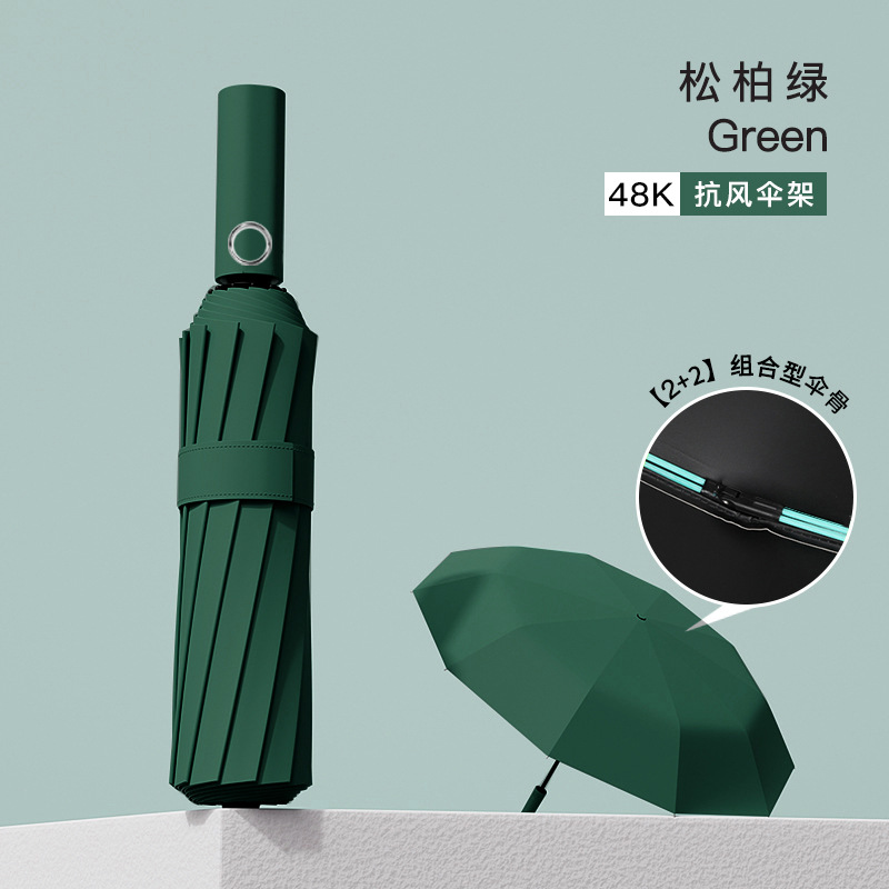 dark green [flagship double dragon bone] 48-bone reinforced sunny umbrella