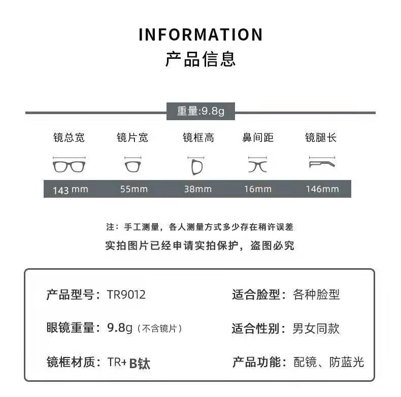 | frame without film (can be equipped with lenses in the glasses shop by yourself) | CN¥ 8.16 | 3814910 pair available |