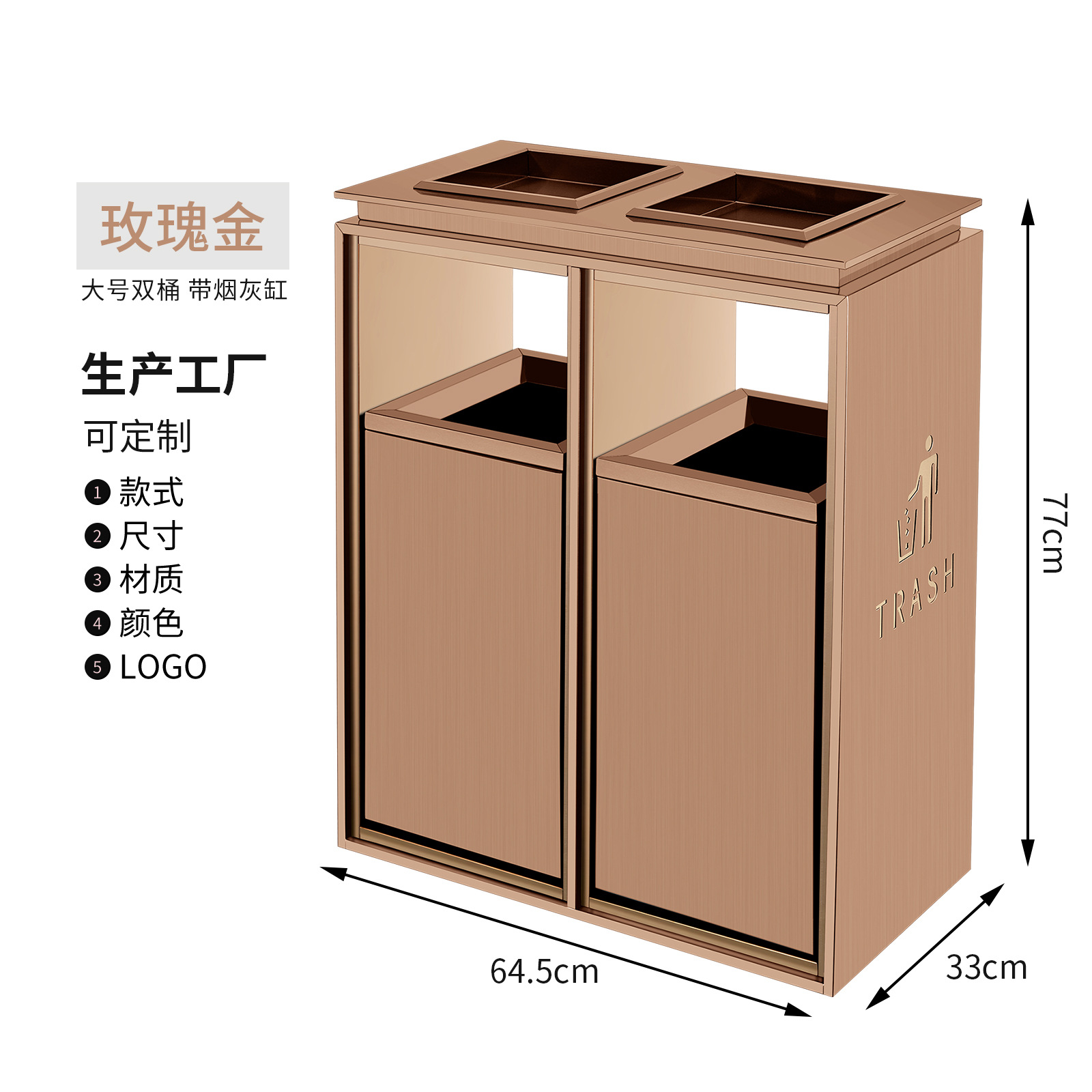 small size double barrel rose gold ashtray