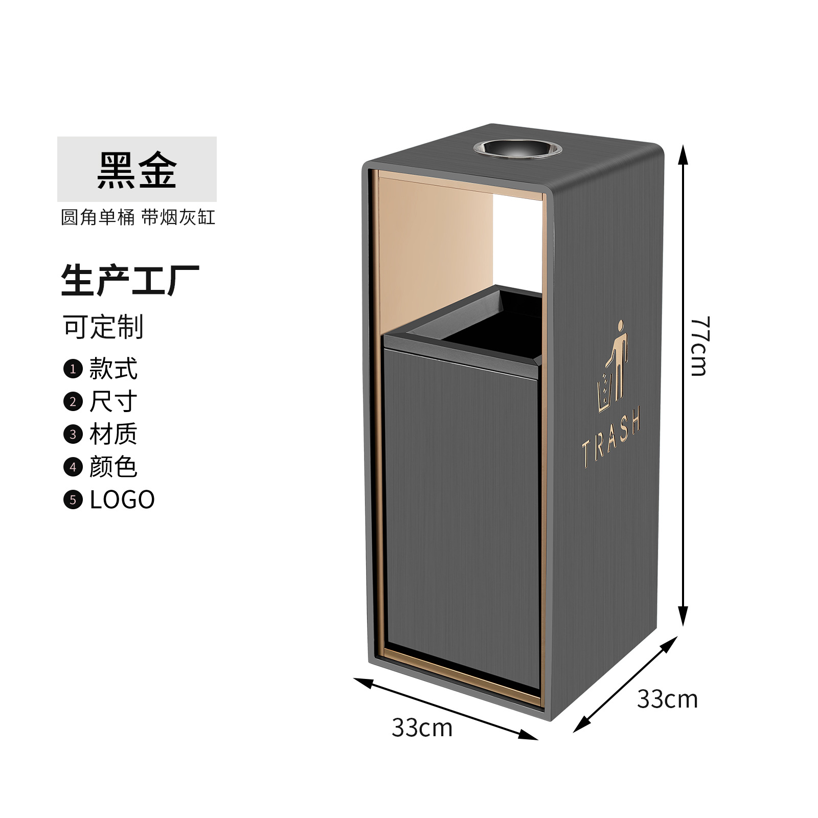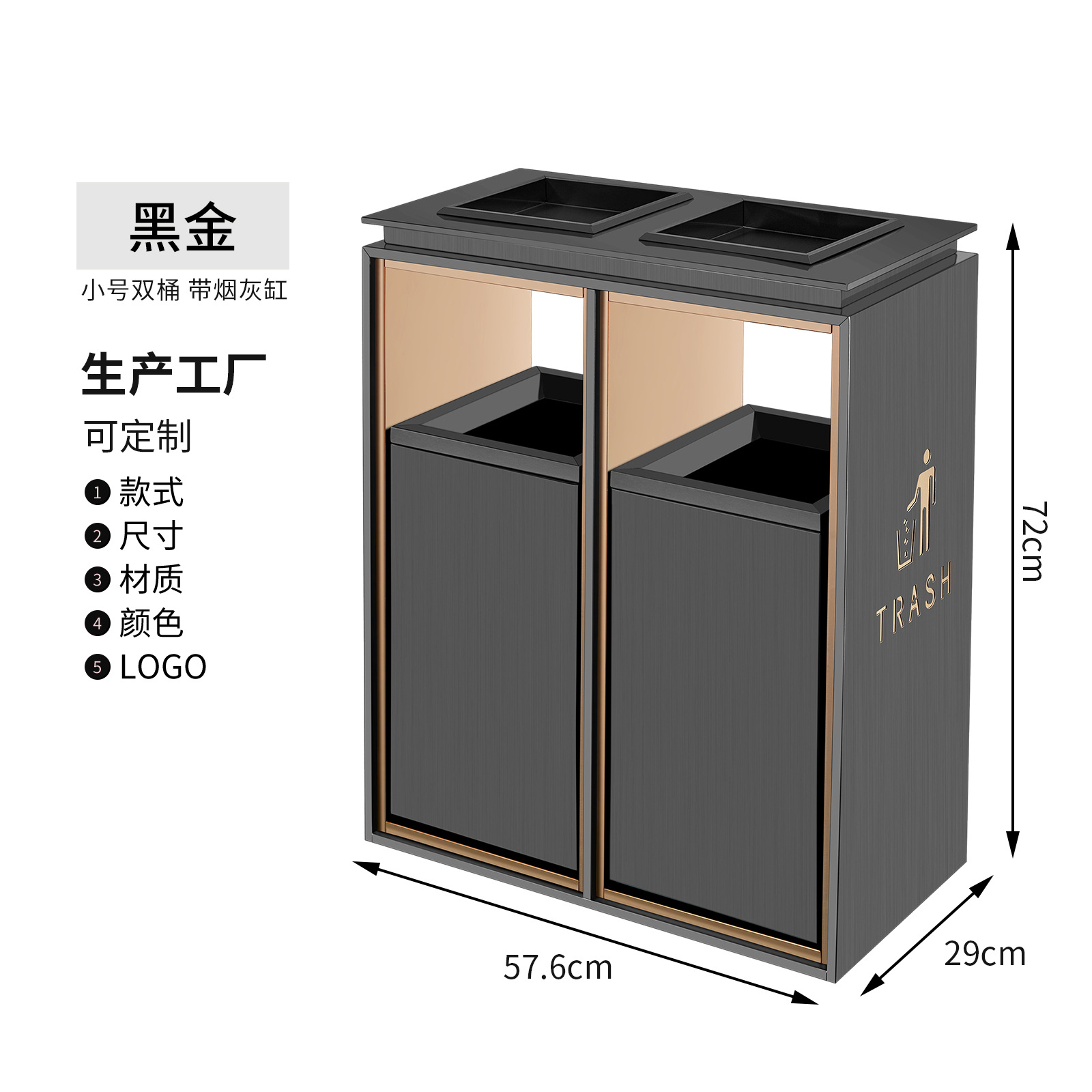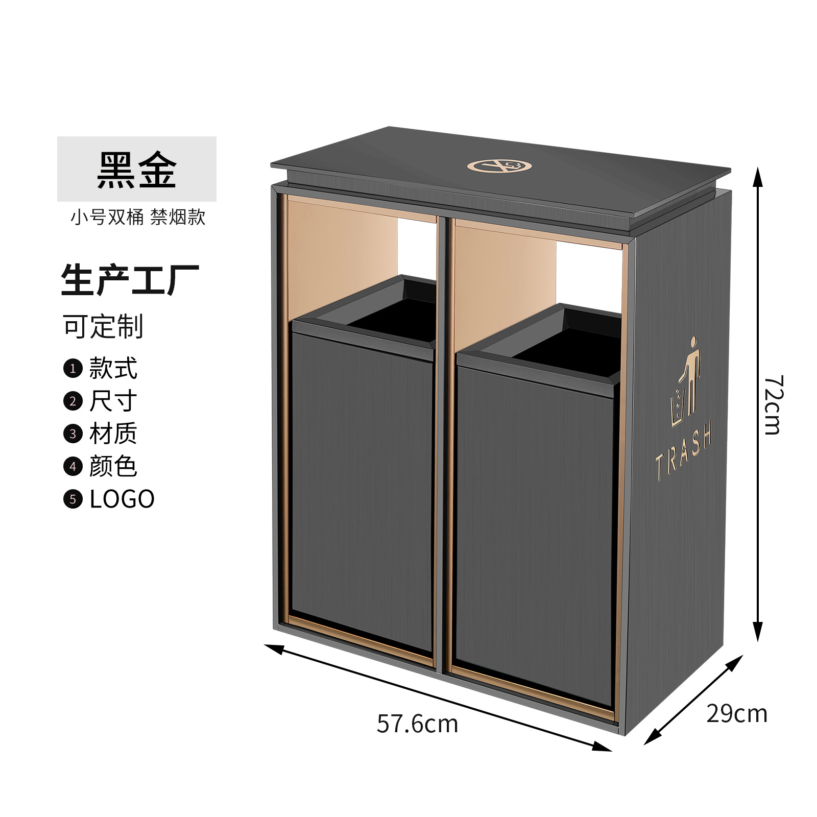 small size black gold non-smoking