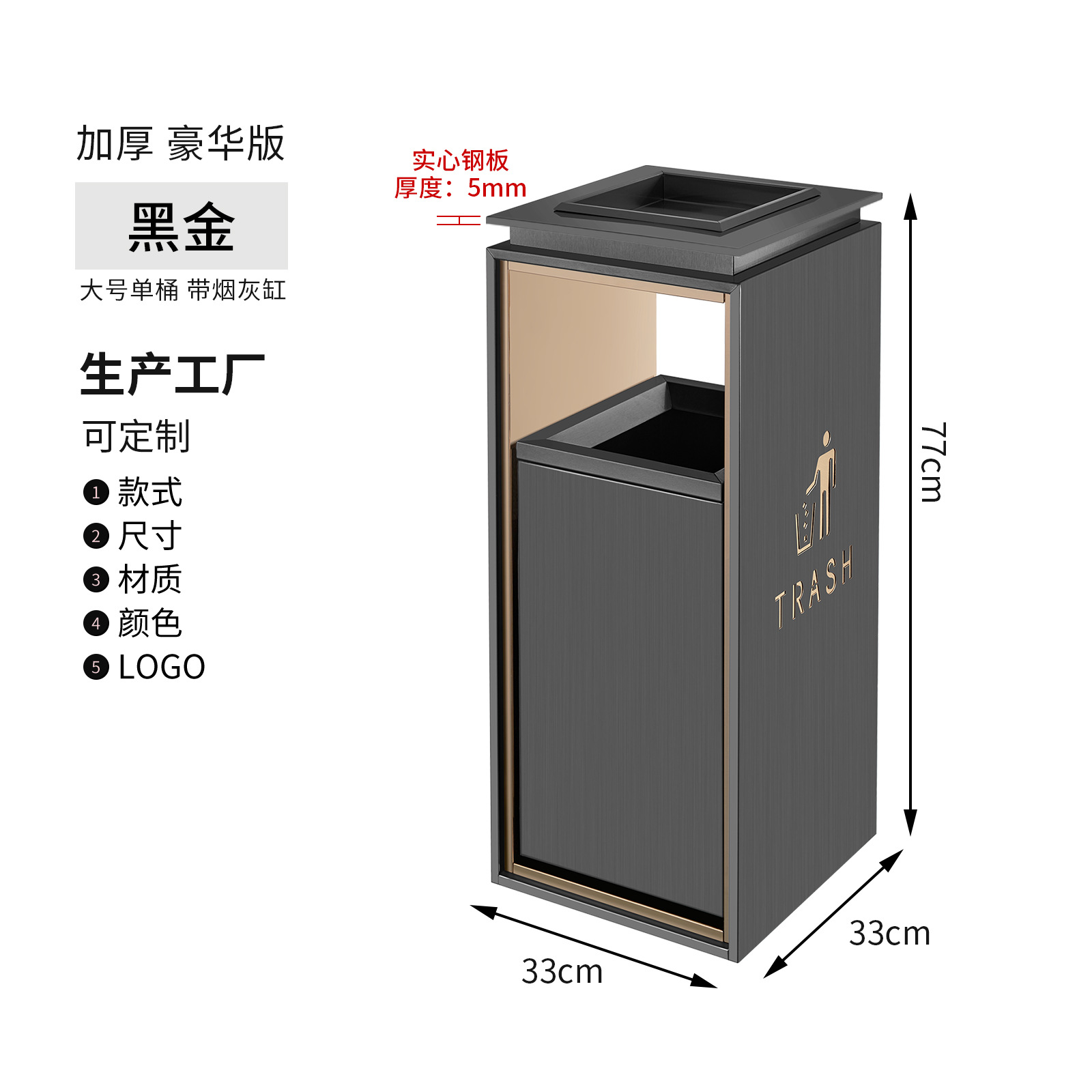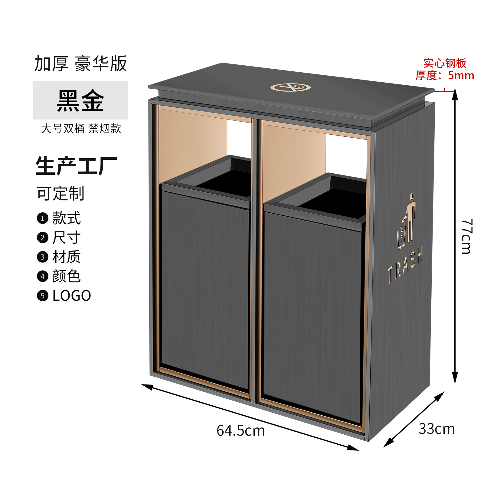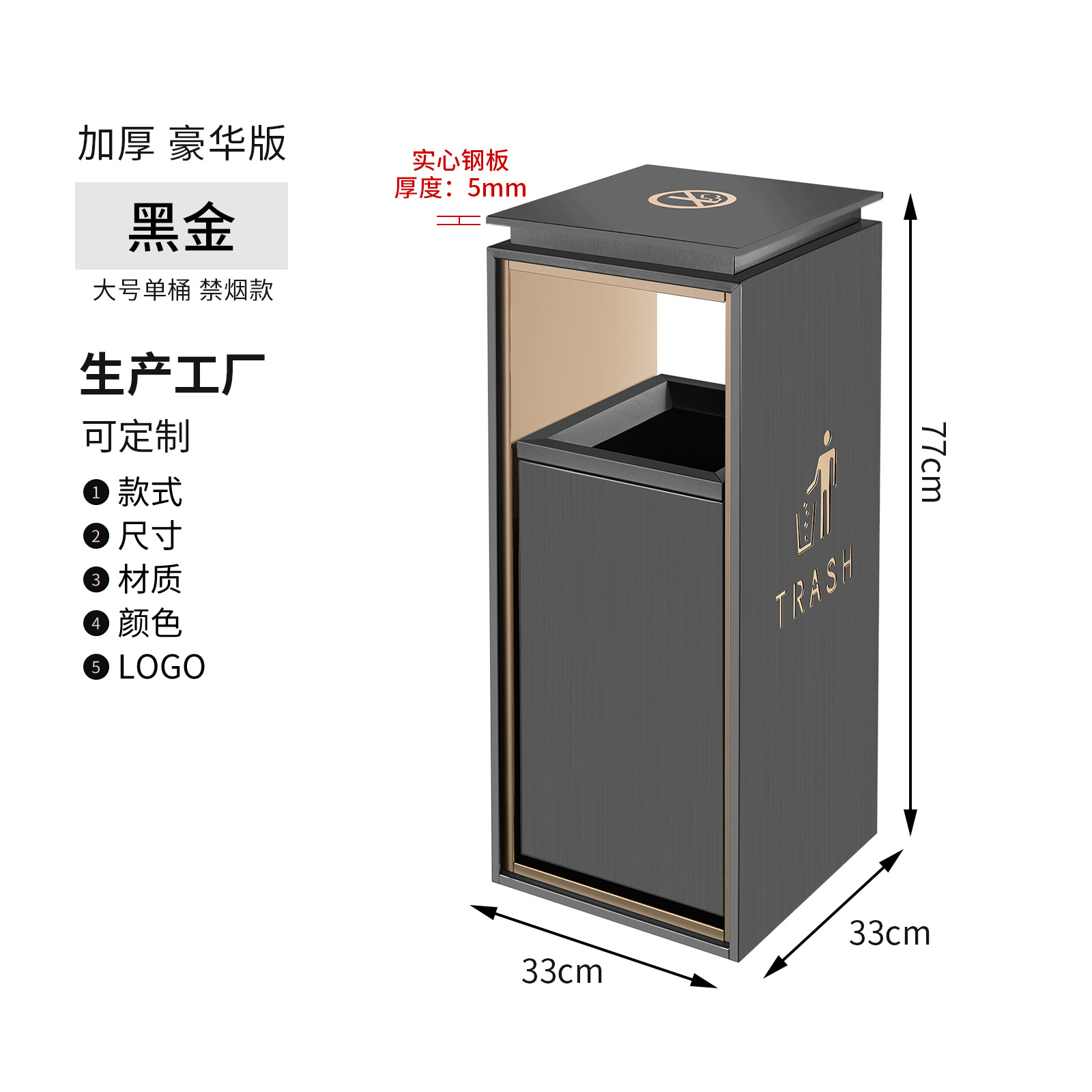 small size black gold non-smoking