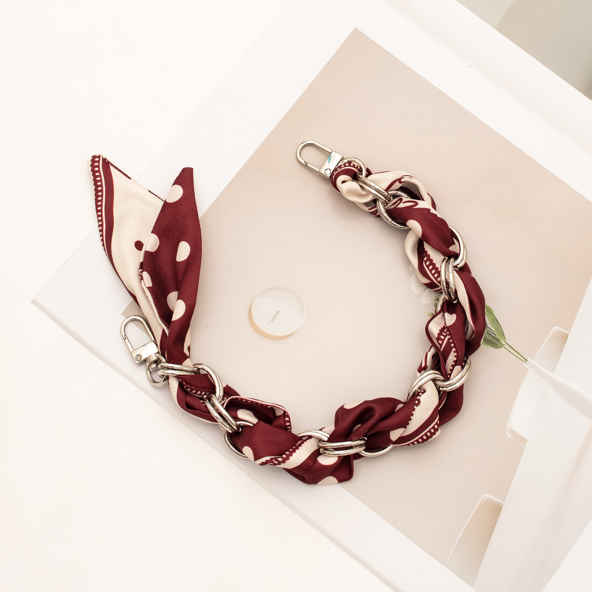 [polka dot series ● brown with polkadot] silver style mobile phone charm 34cm (clip free)