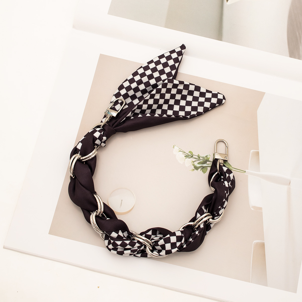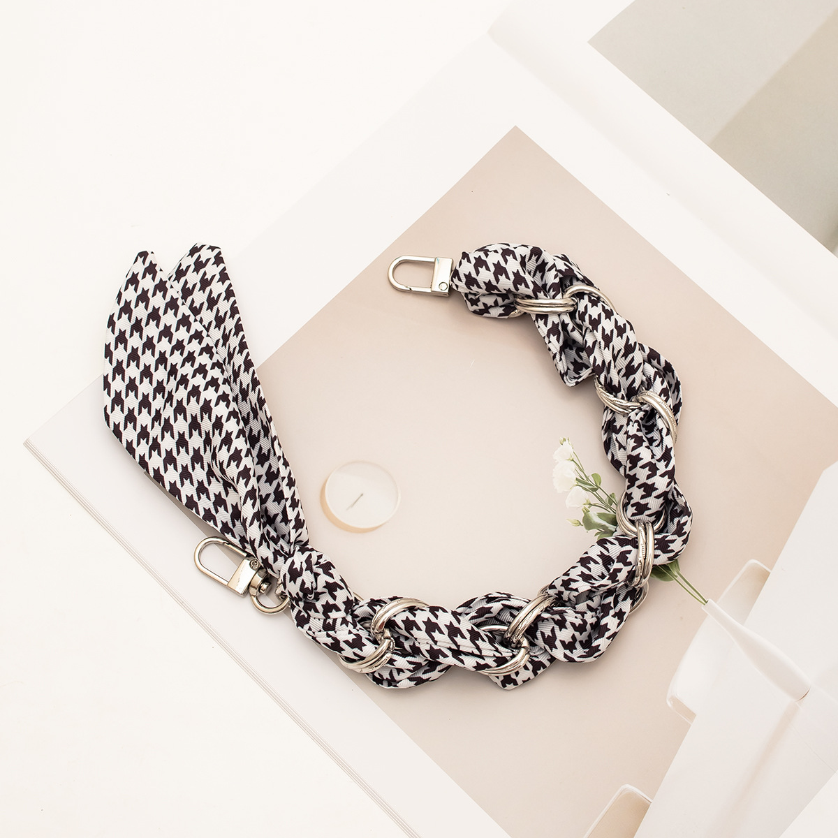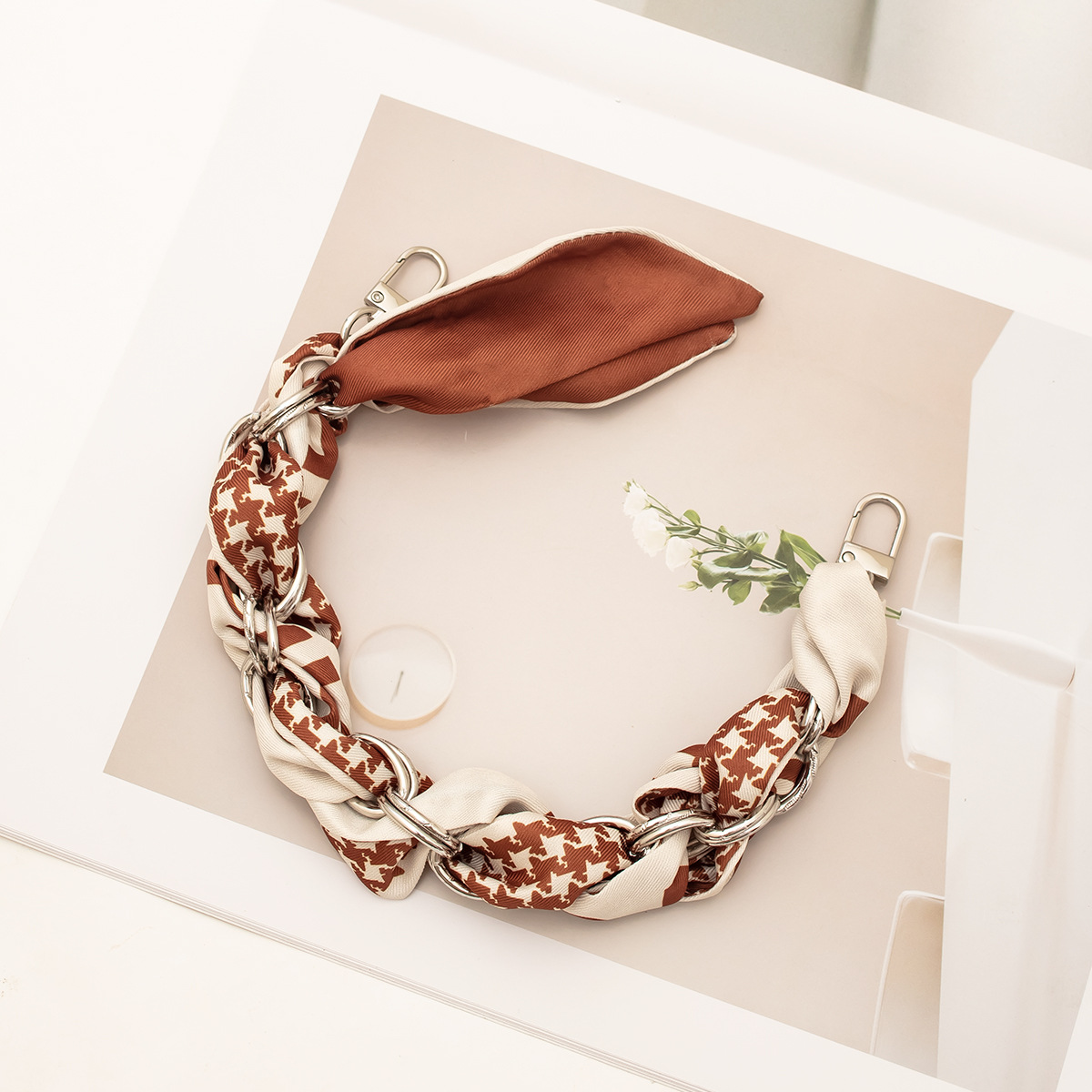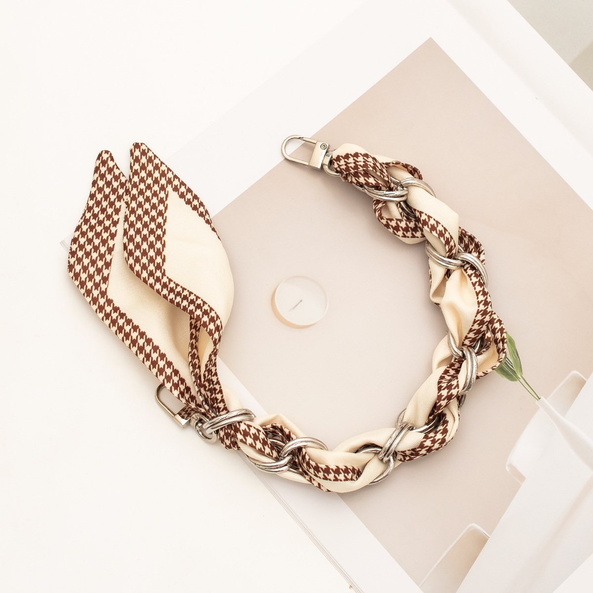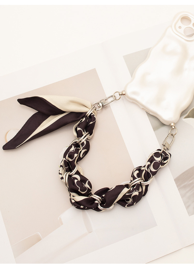 [houndstooth series ● brown] silver mobile phone charm 34cm (with clip)