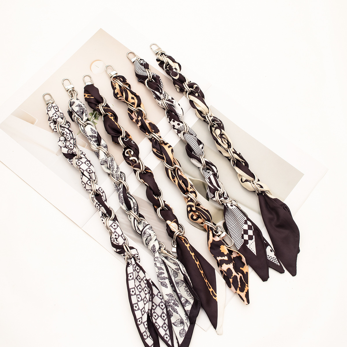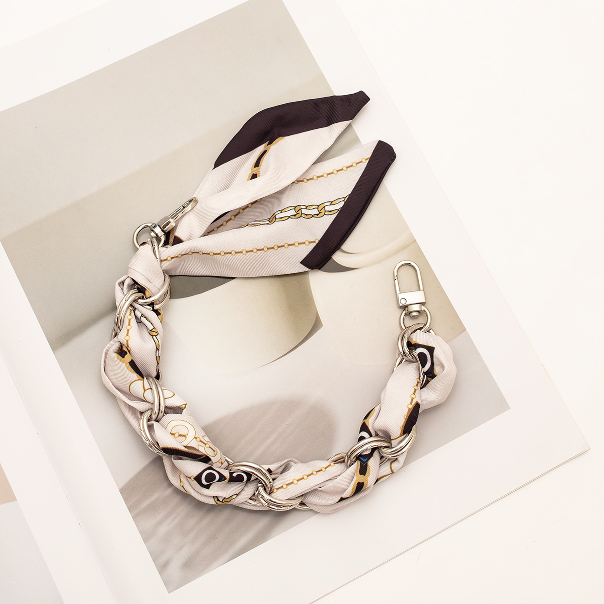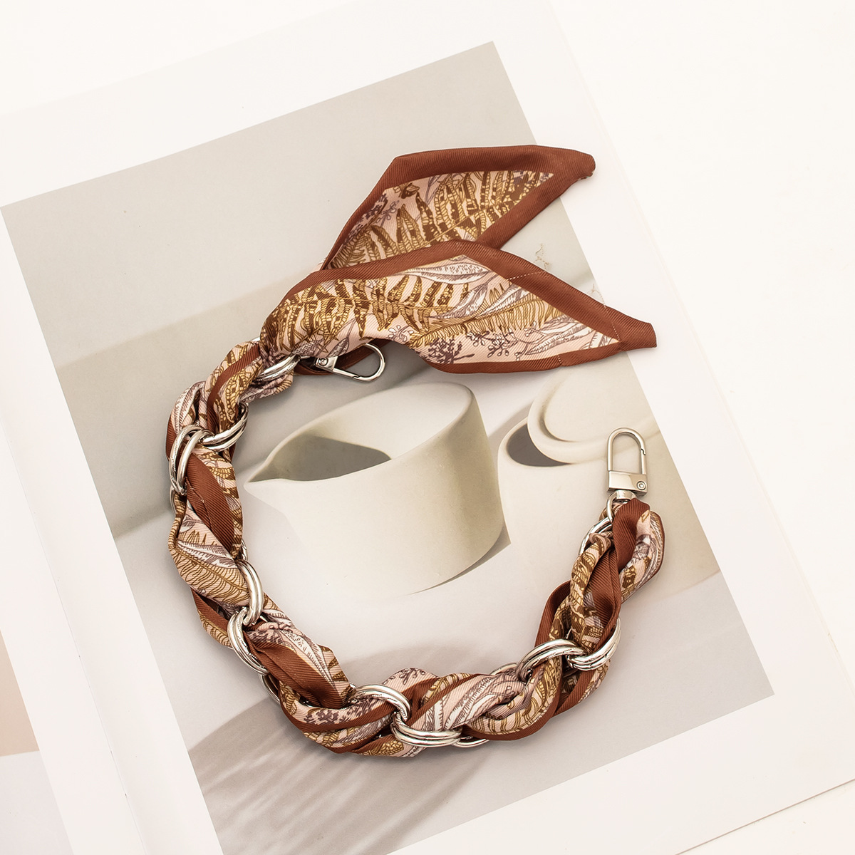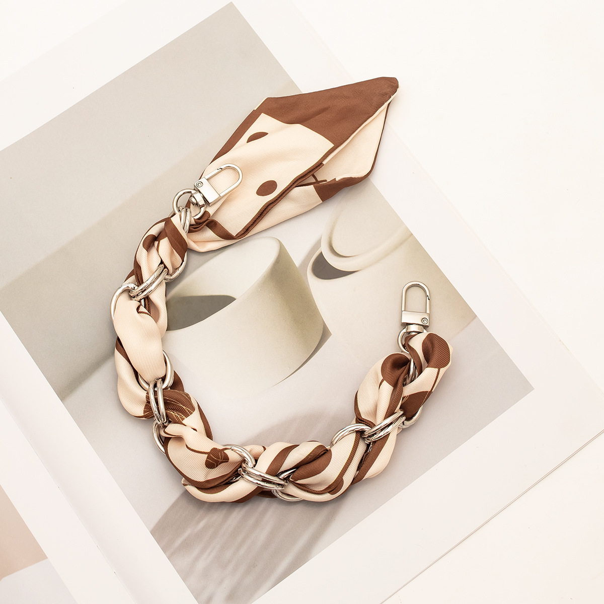 [houndstooth series ● brown] silver mobile phone charm 34cm (with clip)