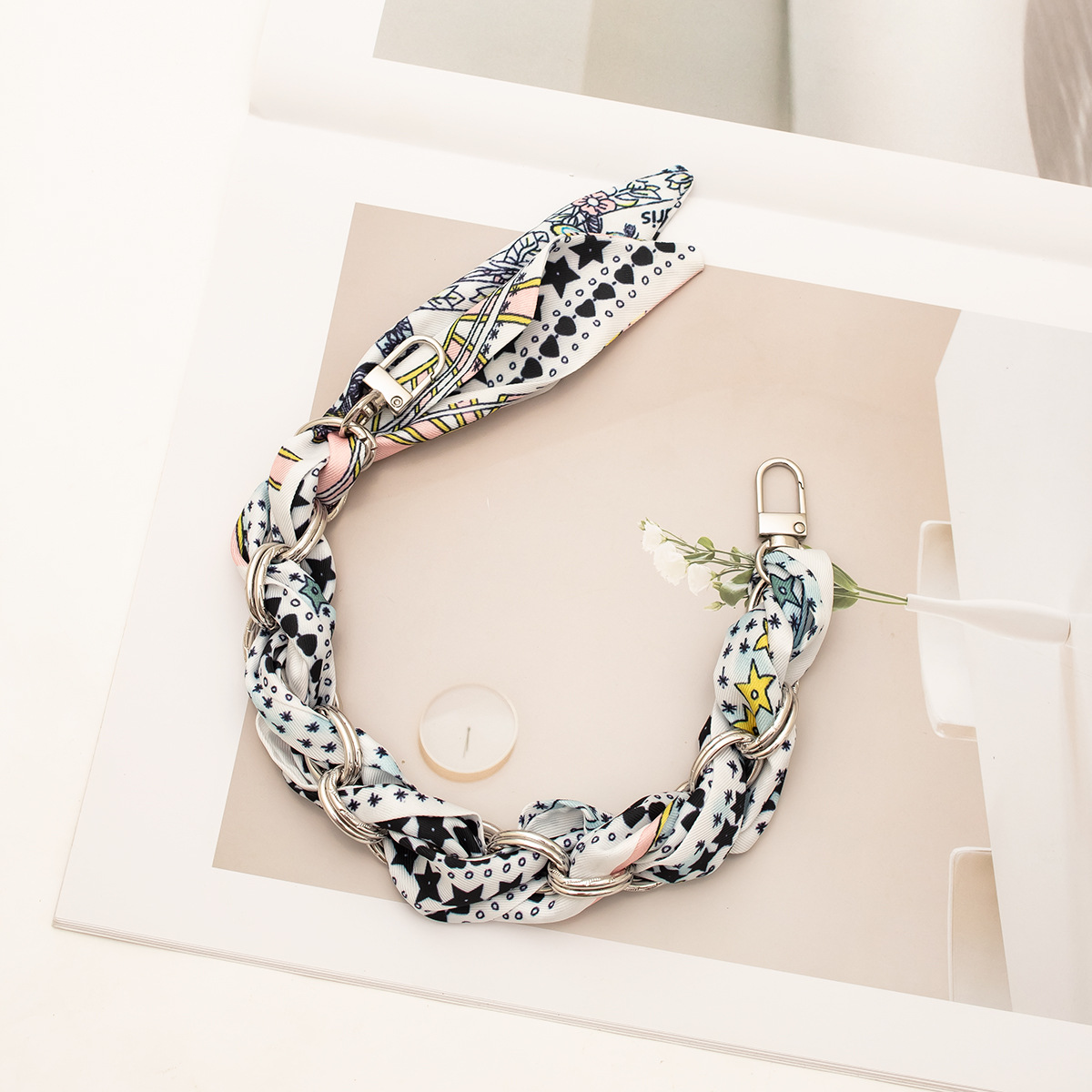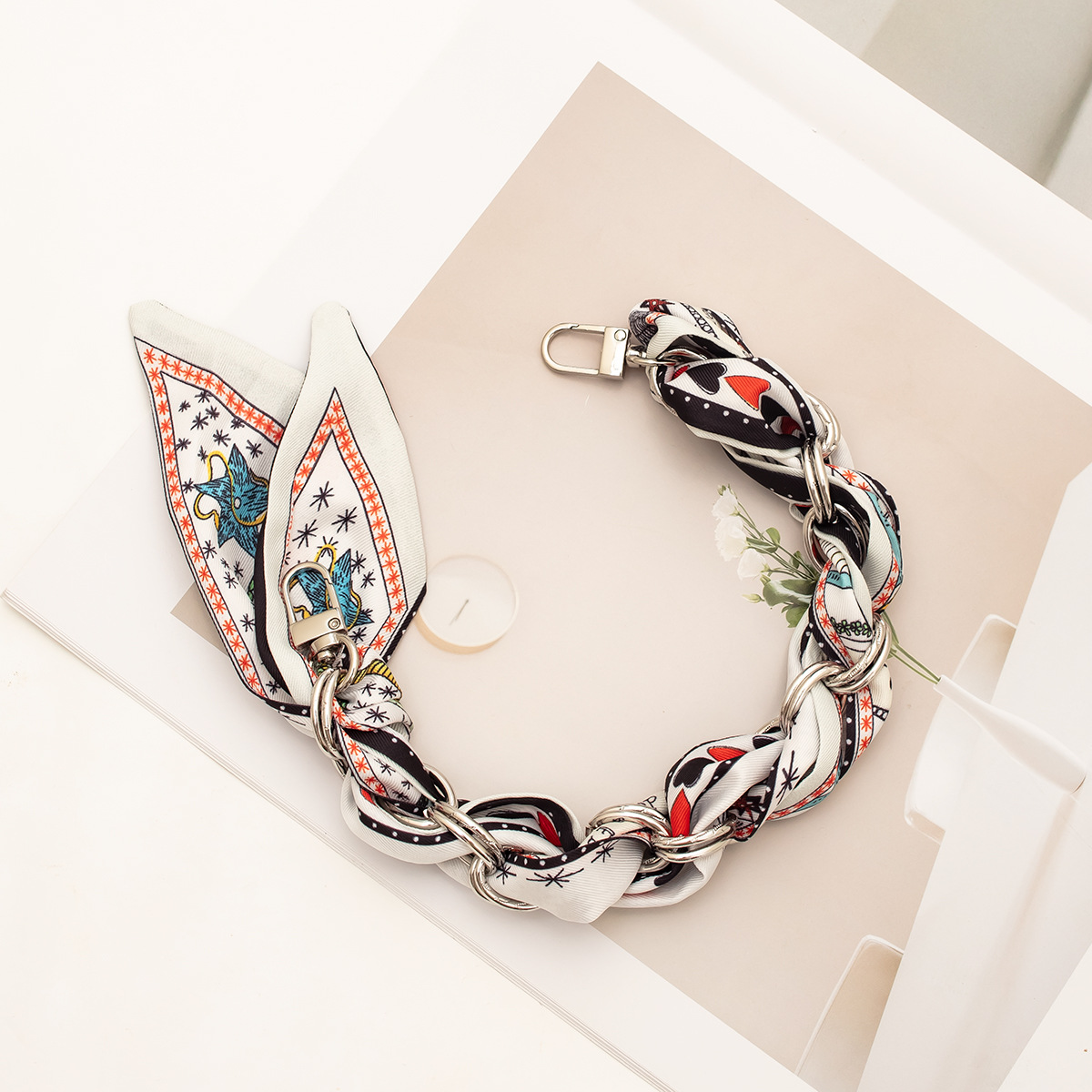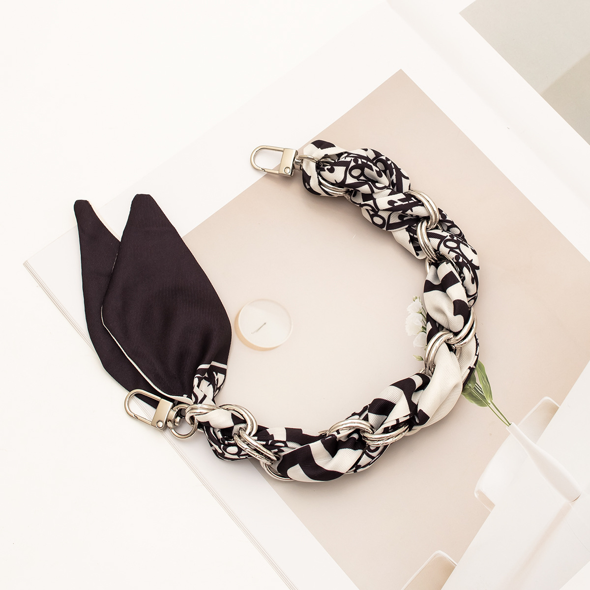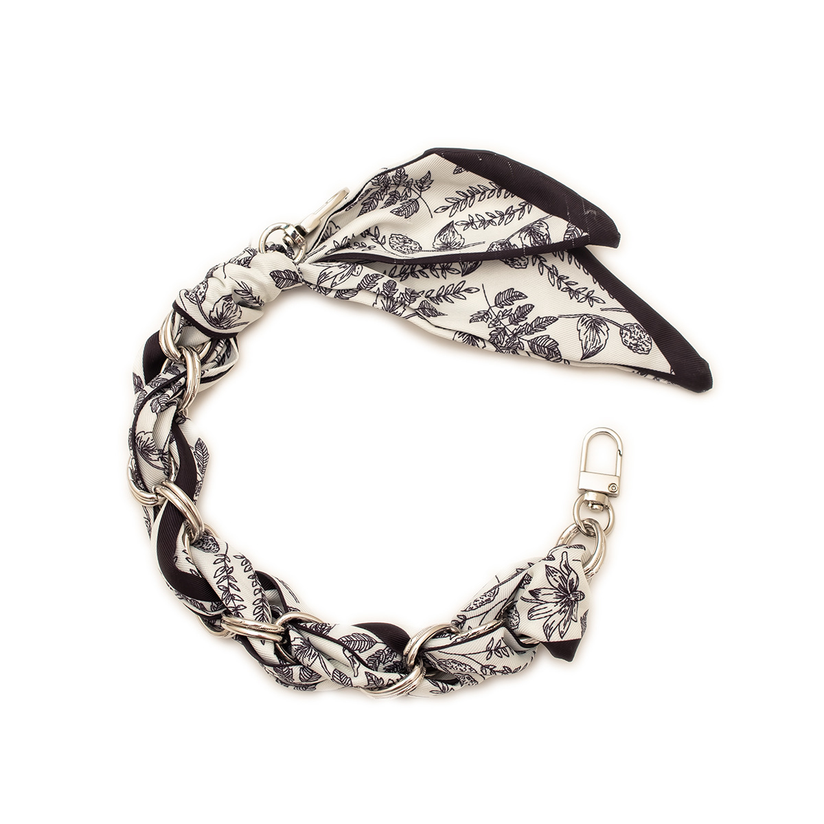 [floral series ● black edge] silver mobile phone charm 34cm (with clip)