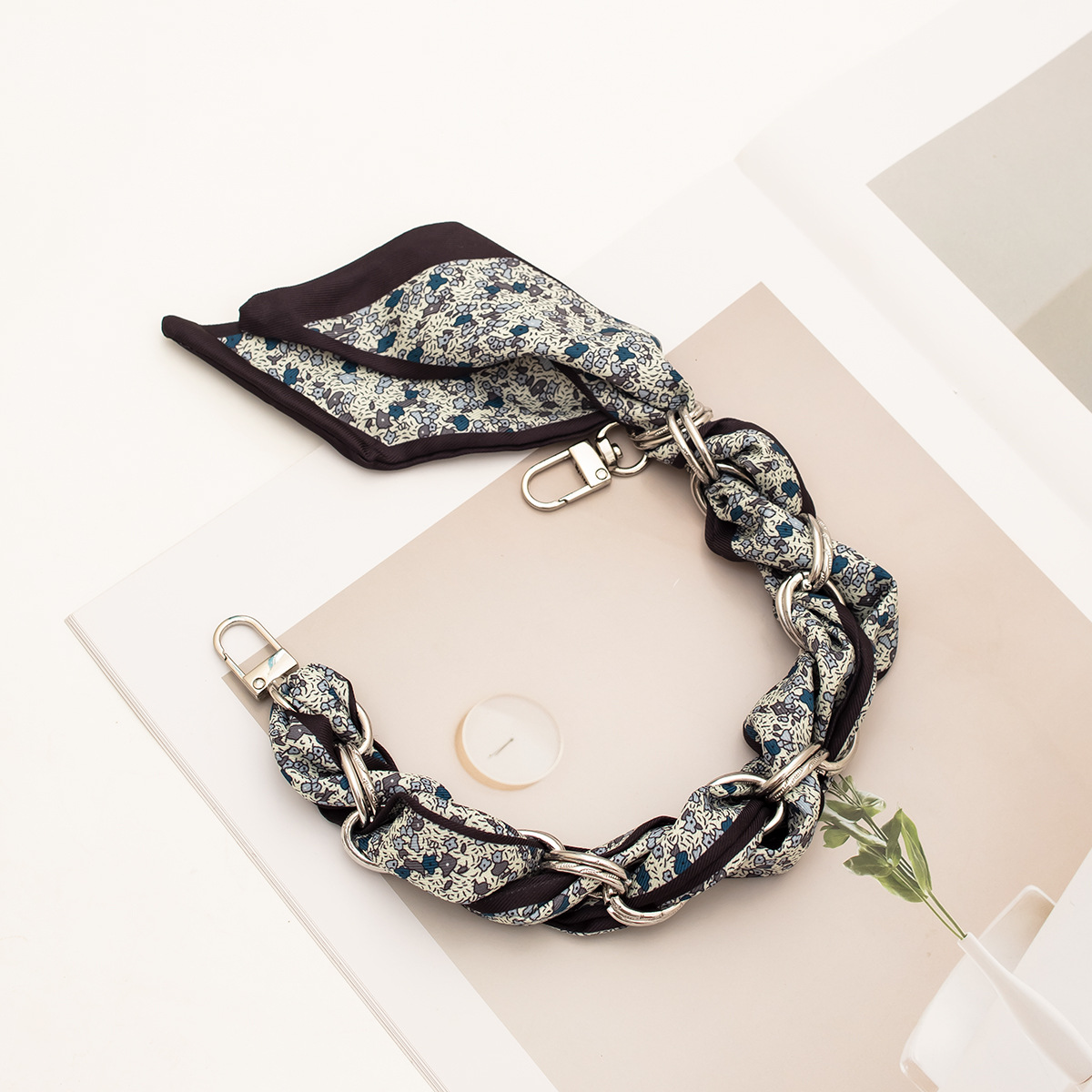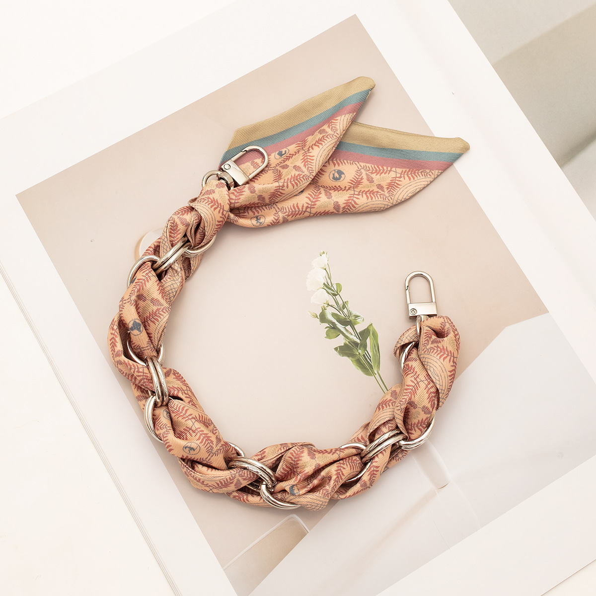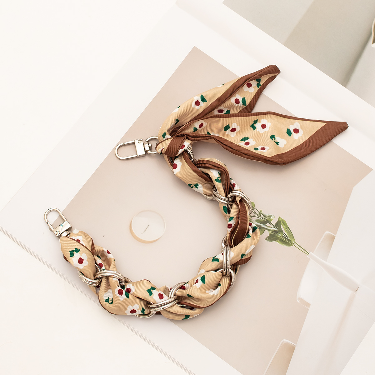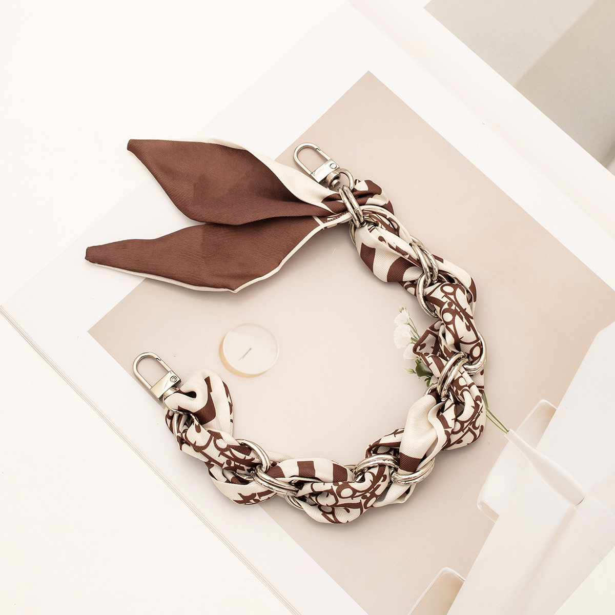 [floral series ● brown edge] silver mobile phone charm 34cm (with clip)