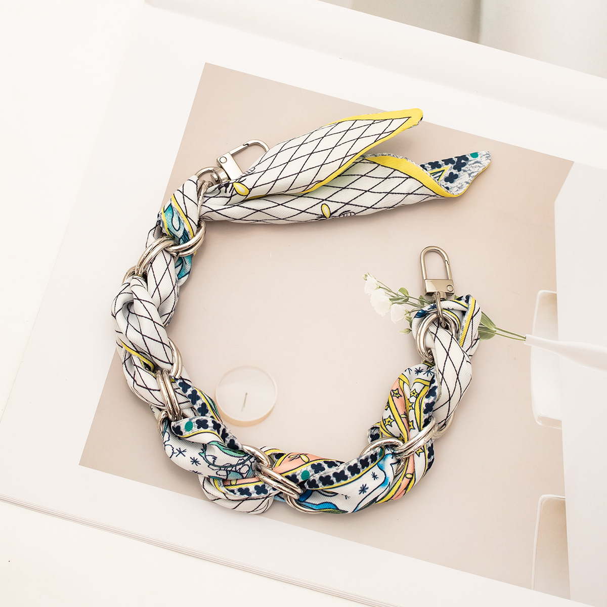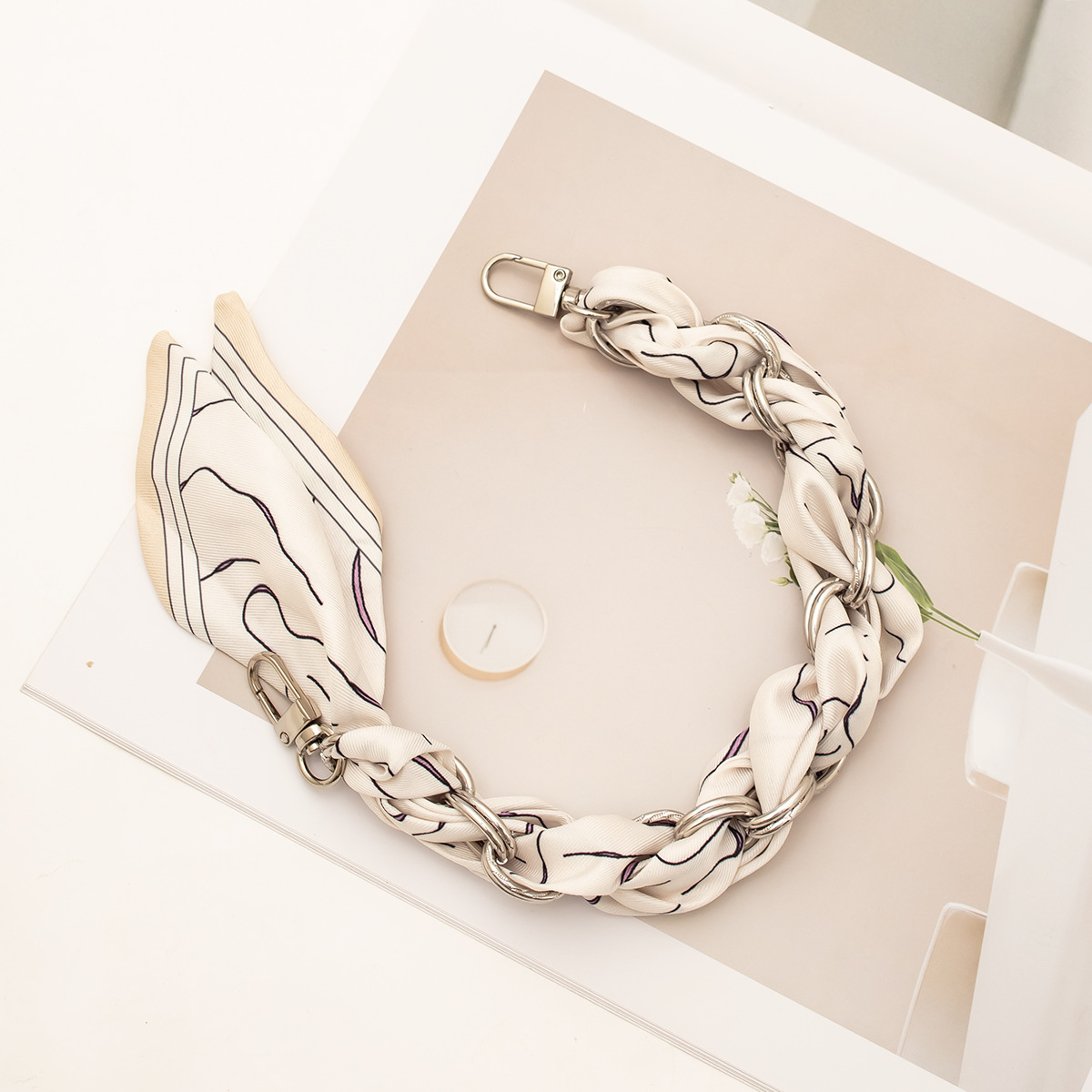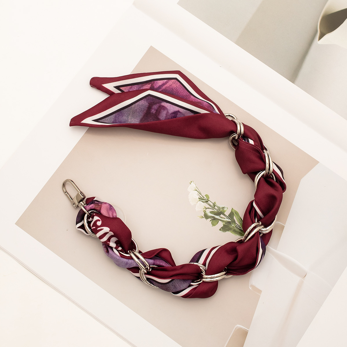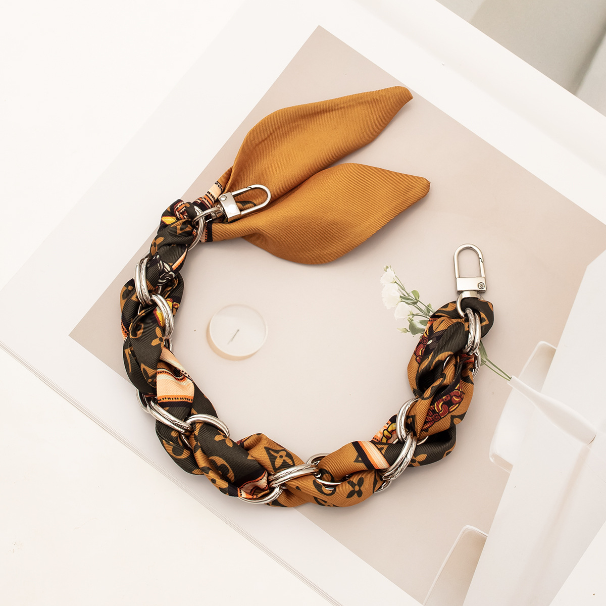 [floral series ● brown edge] silver mobile phone charm 34cm (with clip)