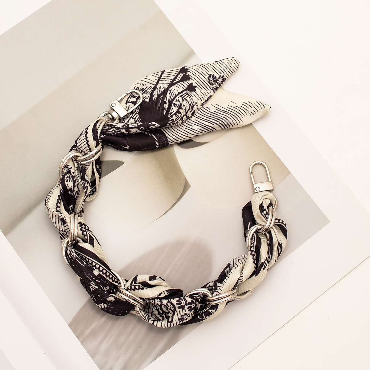 [houndstooth series ● black one] silver mobile phone charm 34cm (with clip)