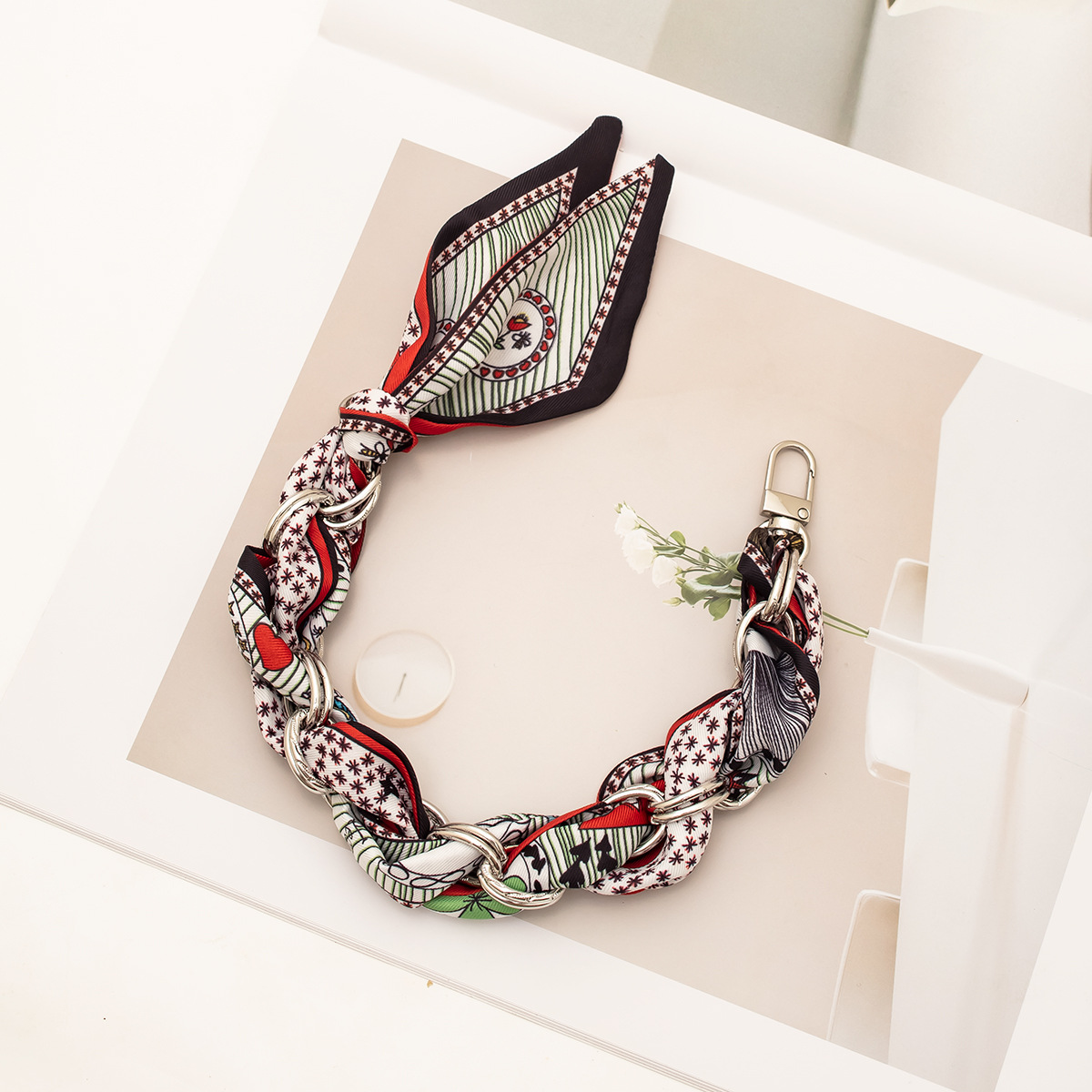 [floral series ● red edge] silver mobile phone charm 34cm (with clip)
