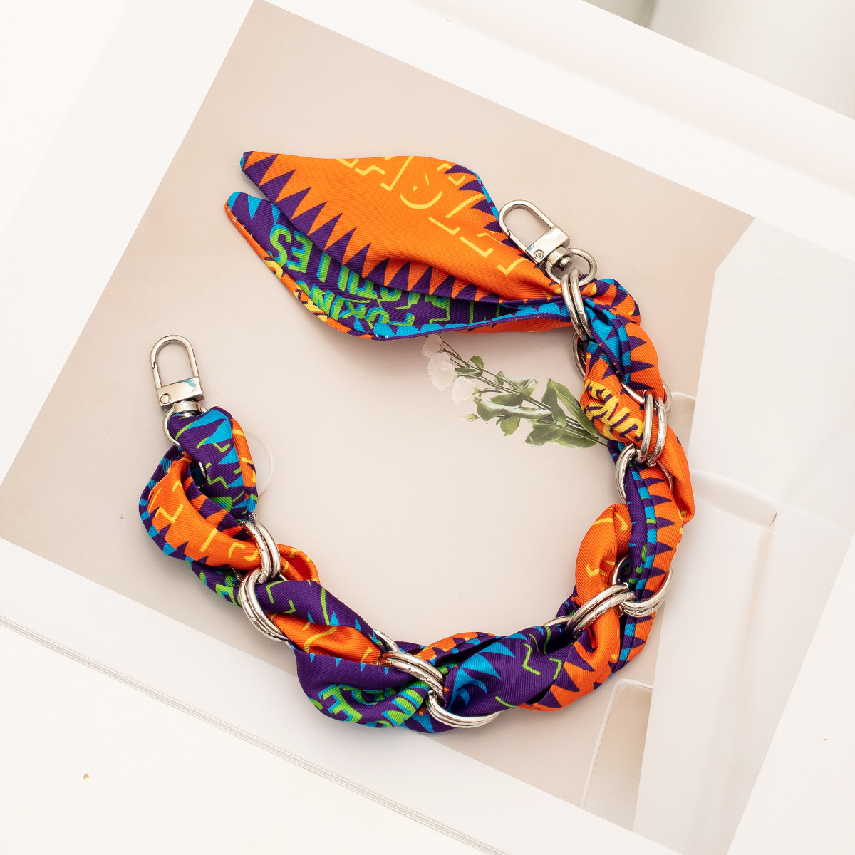[stripe series ● purple orange] silver mobile phone charm 34cm (clip free)