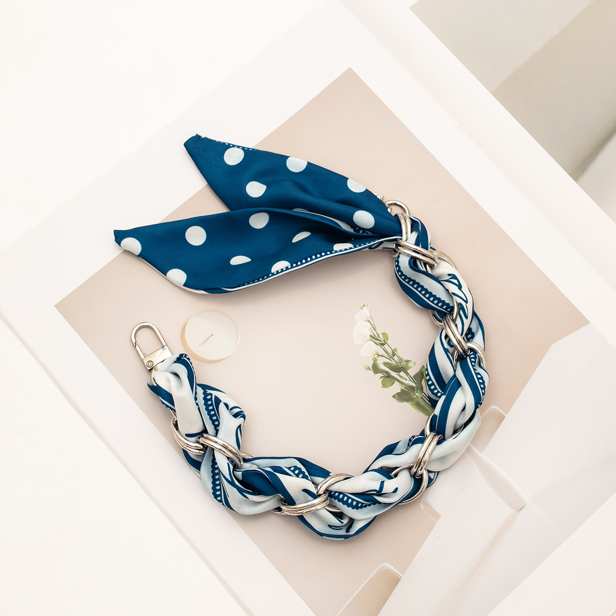 [polka dot series ● blue] silver mobile phone charm 34cm (with clip)