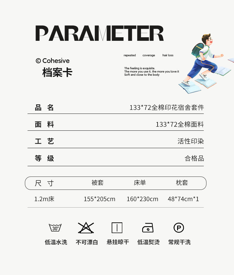 | 0.9 m bed sheet: quilt cover 150 * 200cm bed sheet 160 * 230cm pillowcase 48 * 74cm | CN¥ 110.0 | 3000 bed available |