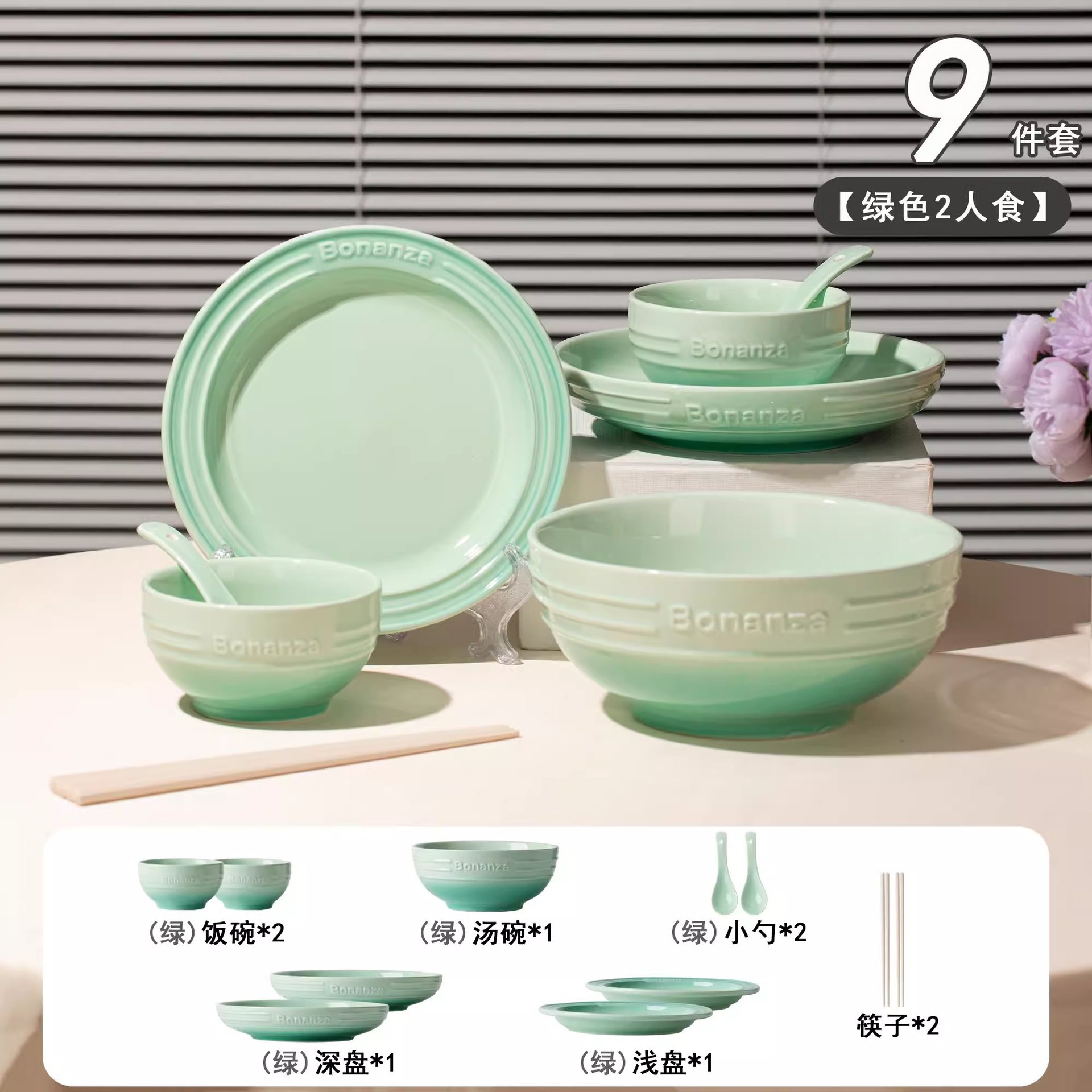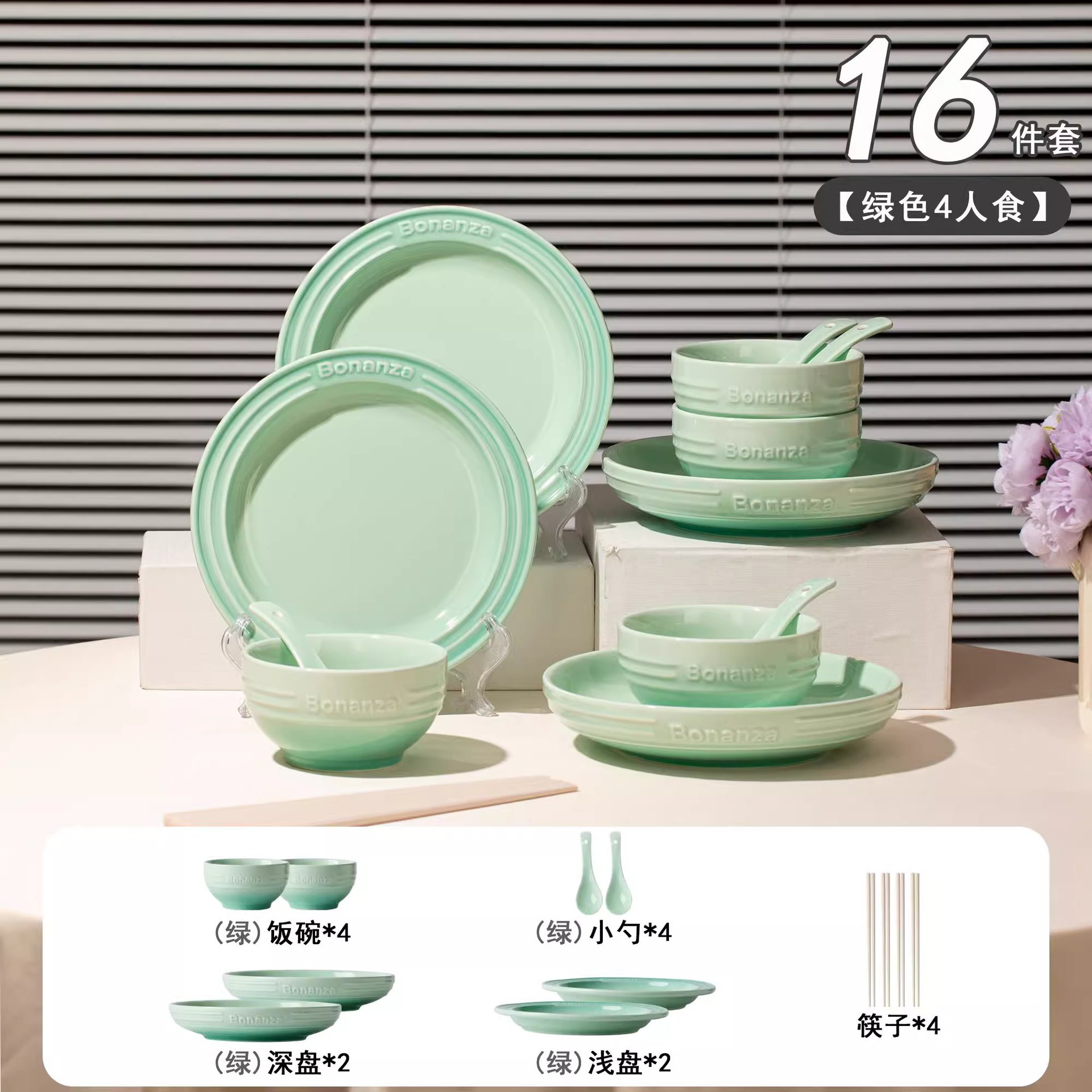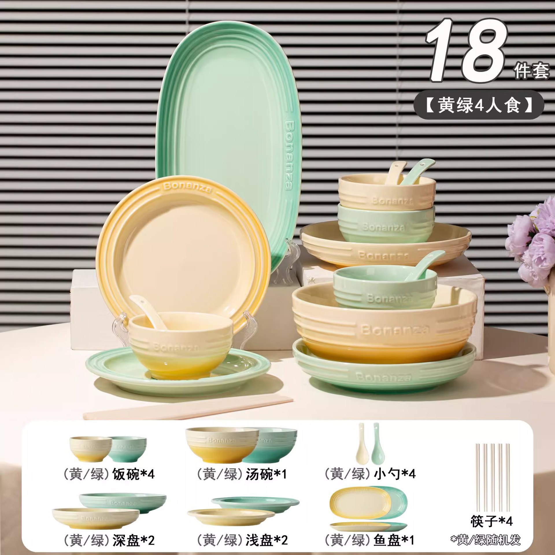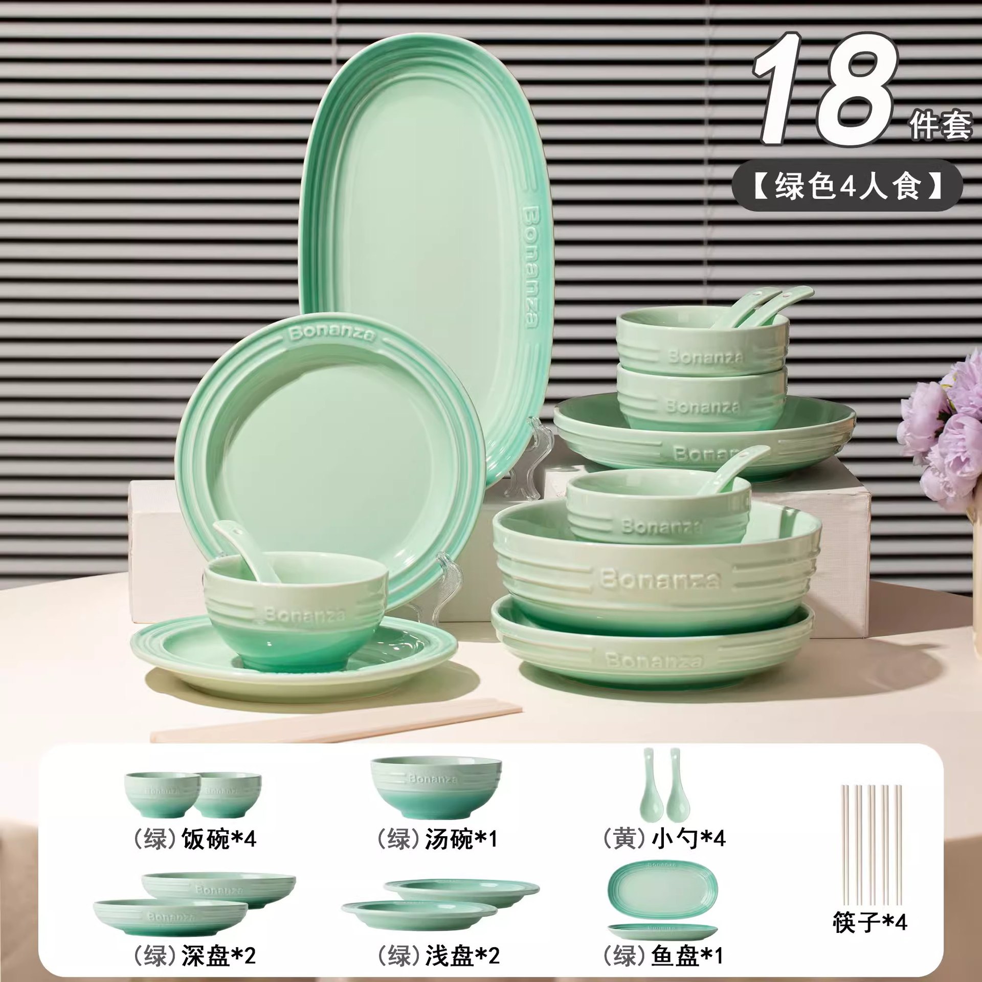 peacock green-4-person food 18-piece set
