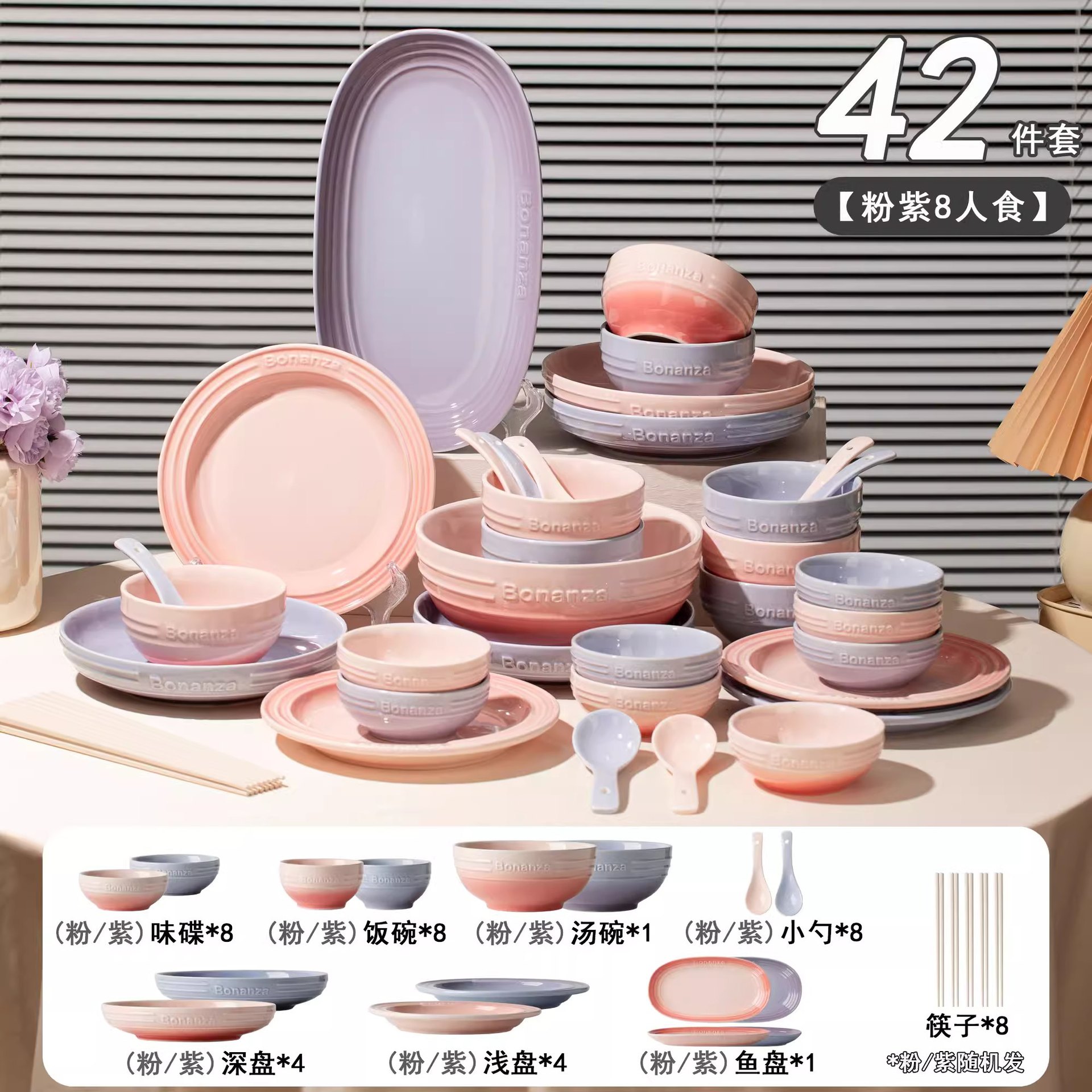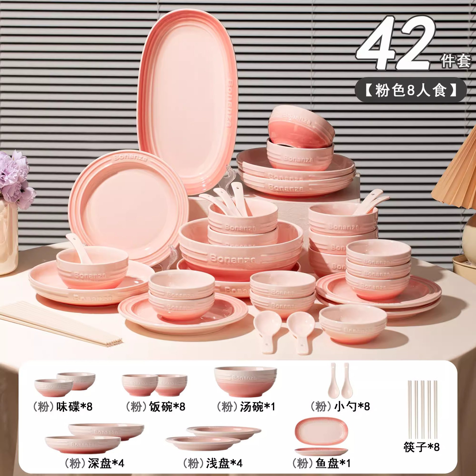 cherry blossom powder-8-person food 42-piece set