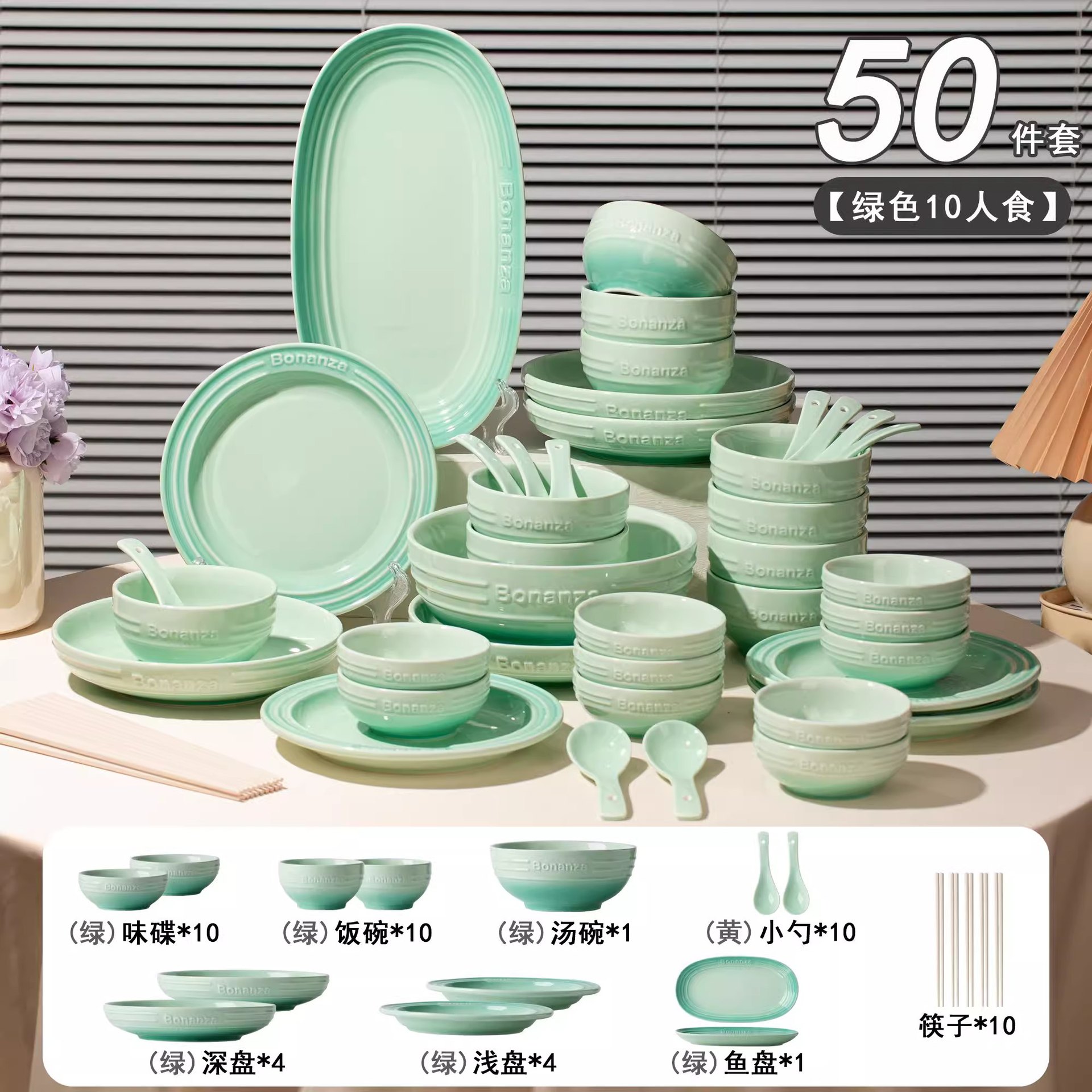 peacock green-50-piece set for 10 people