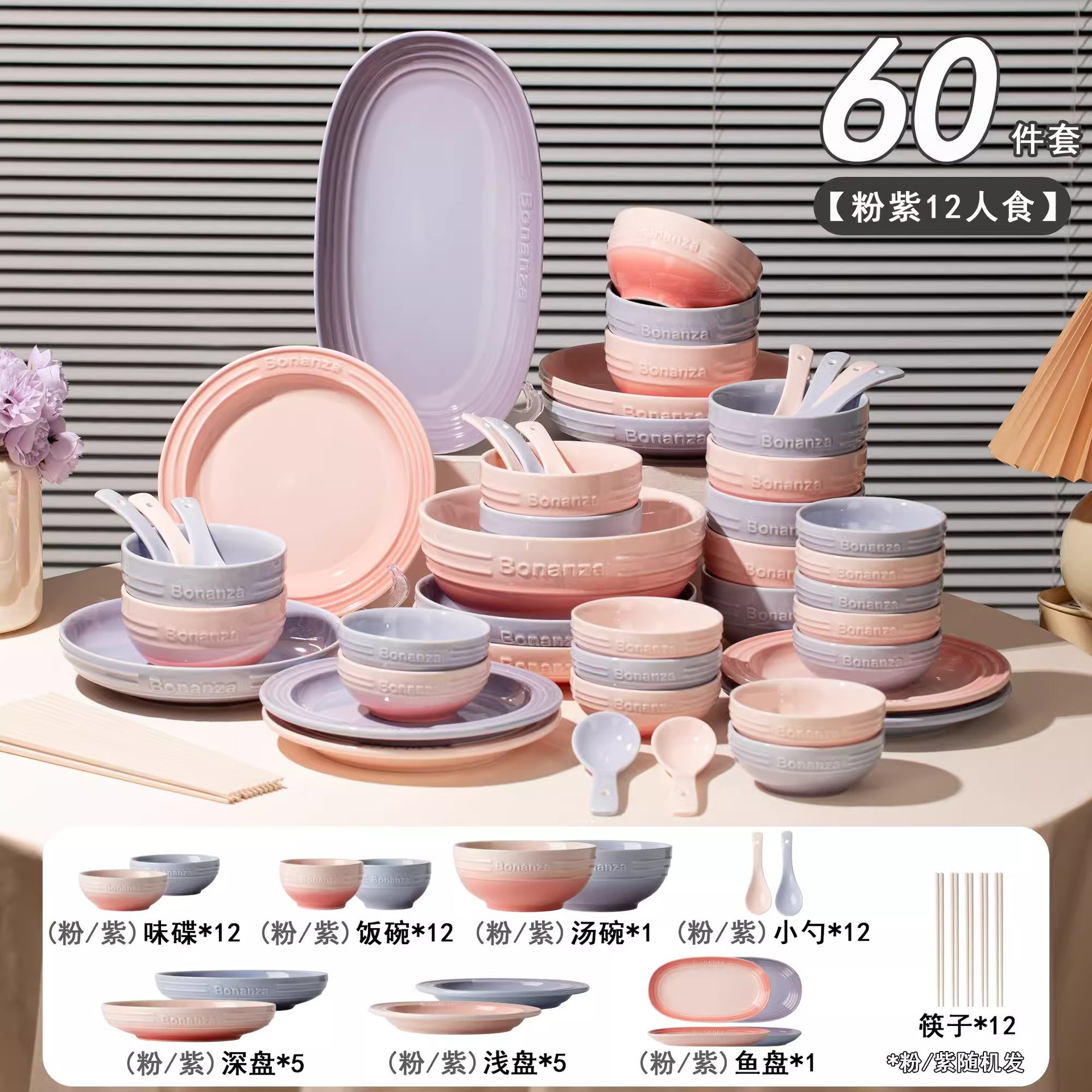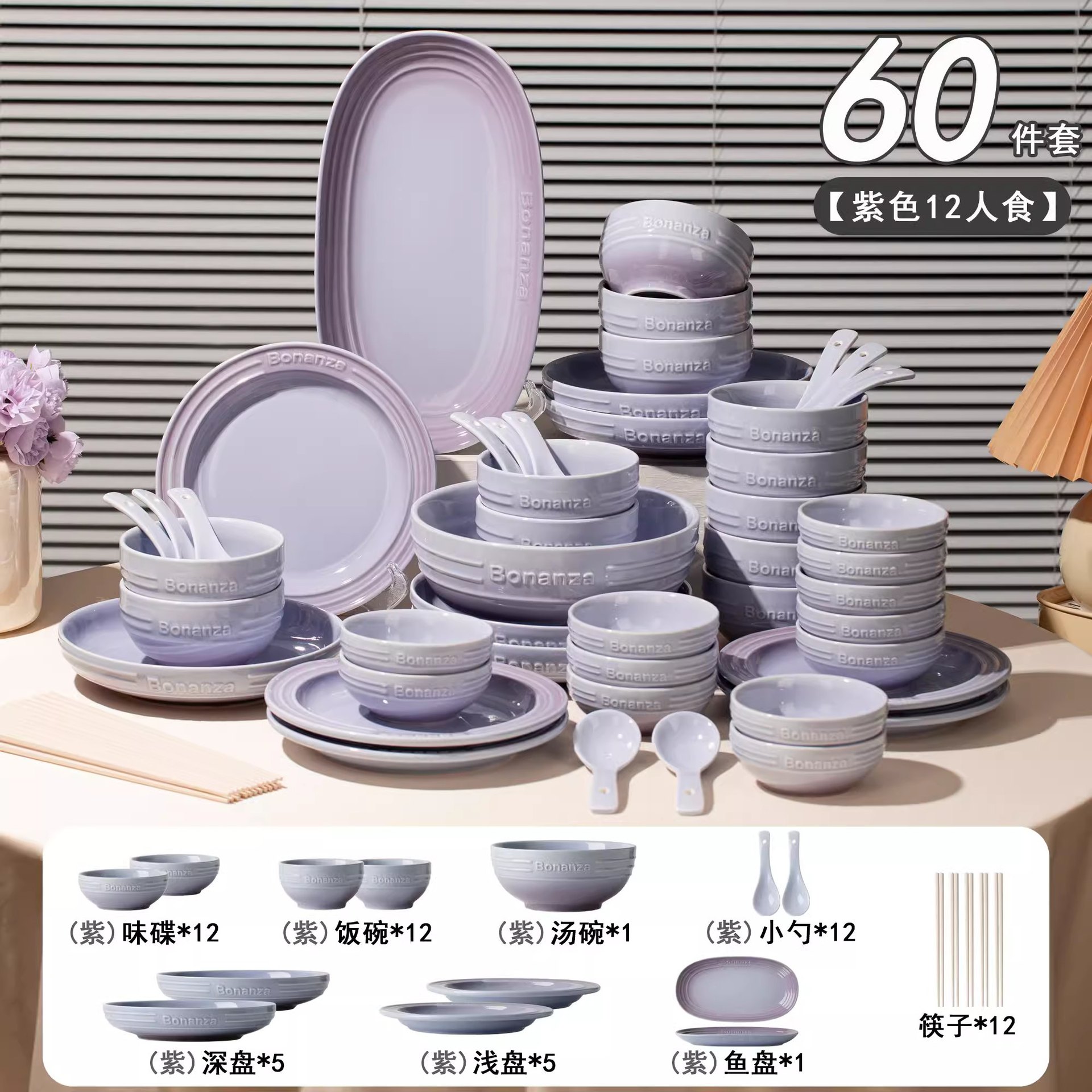 taro purple-60-piece set for 12 people