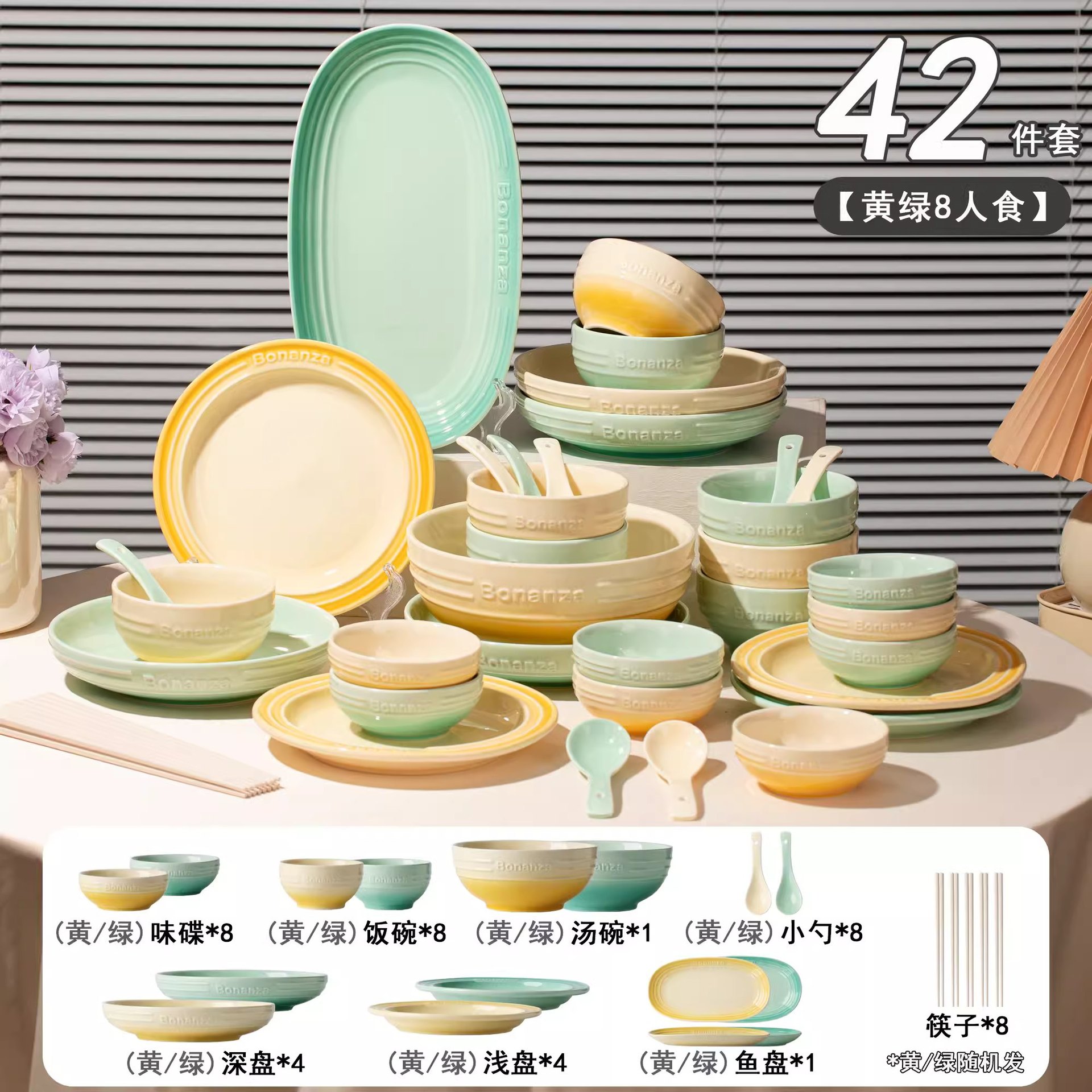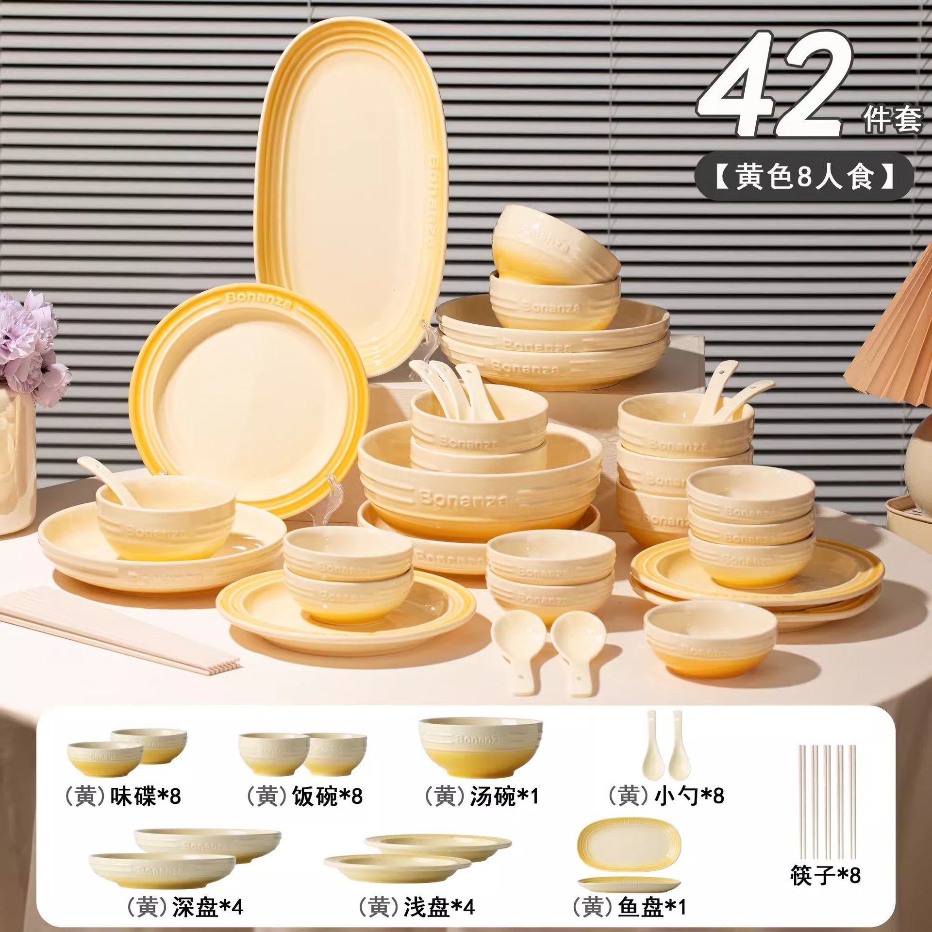 goose down yellow-8 people food 42-piece set