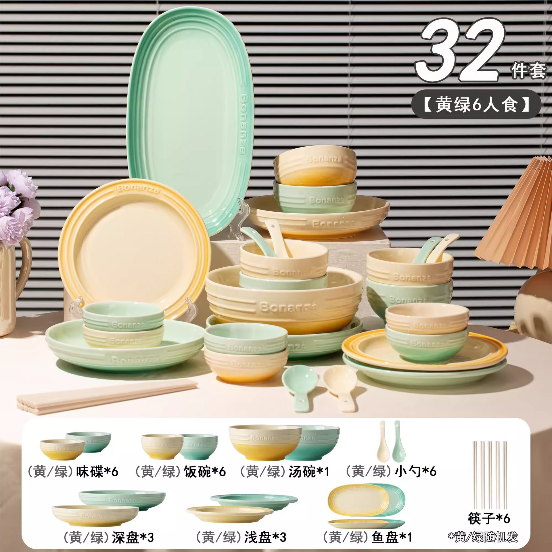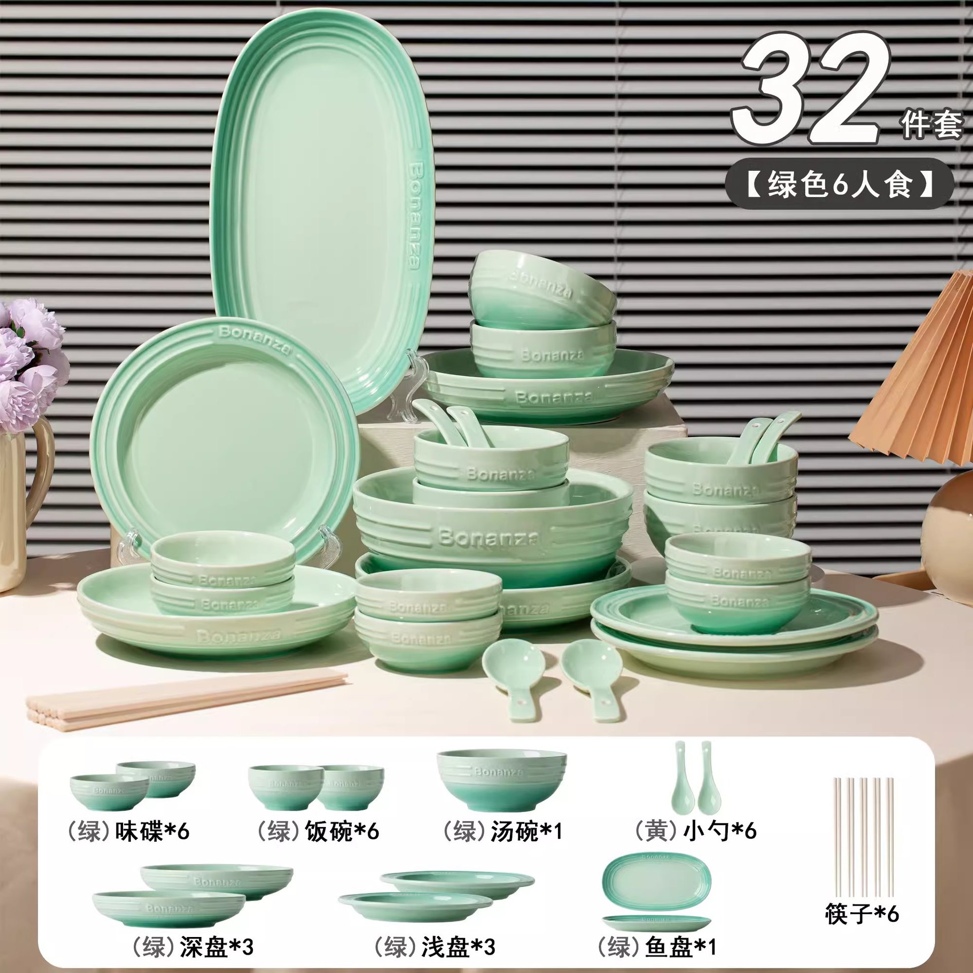 peacock green-6-person food 32-piece set