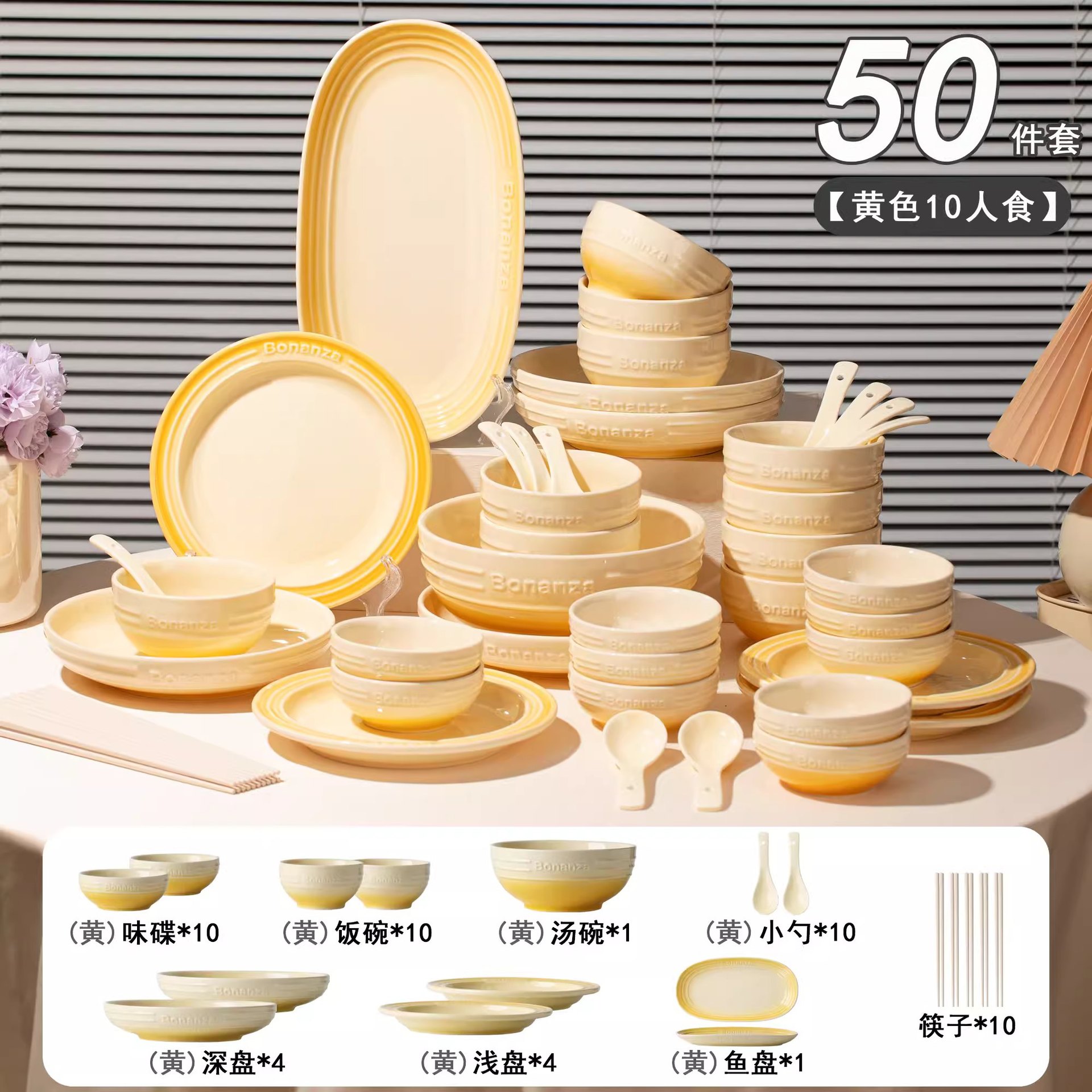 goose down yellow-50-piece set for 10 people