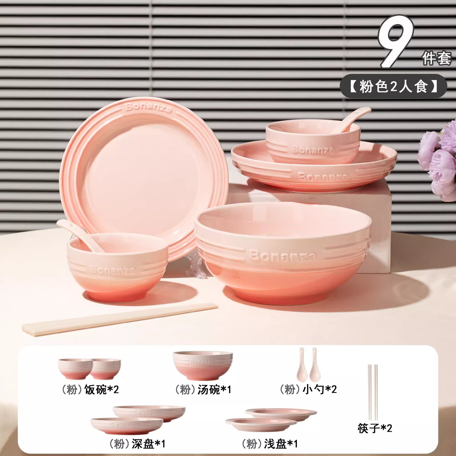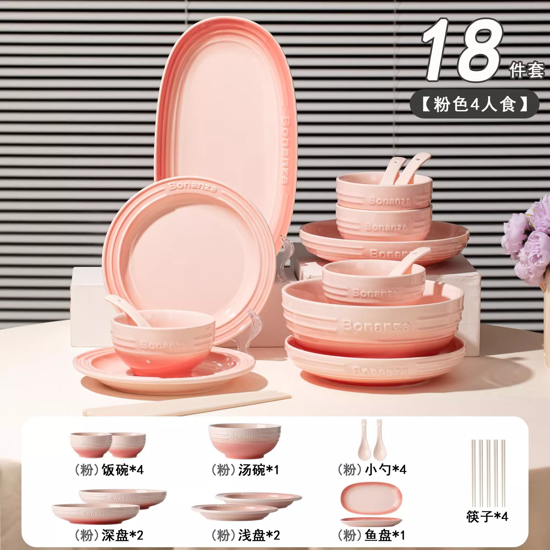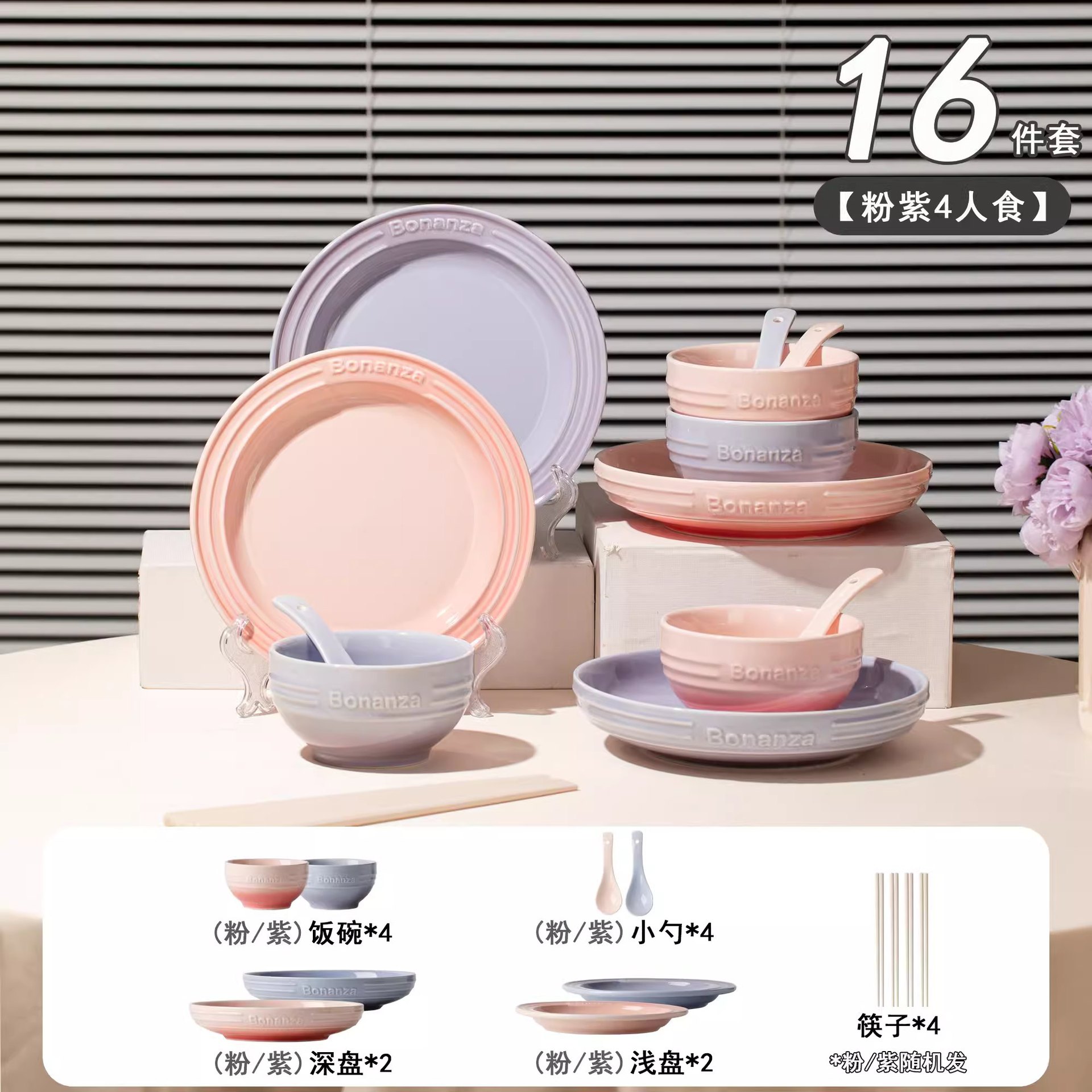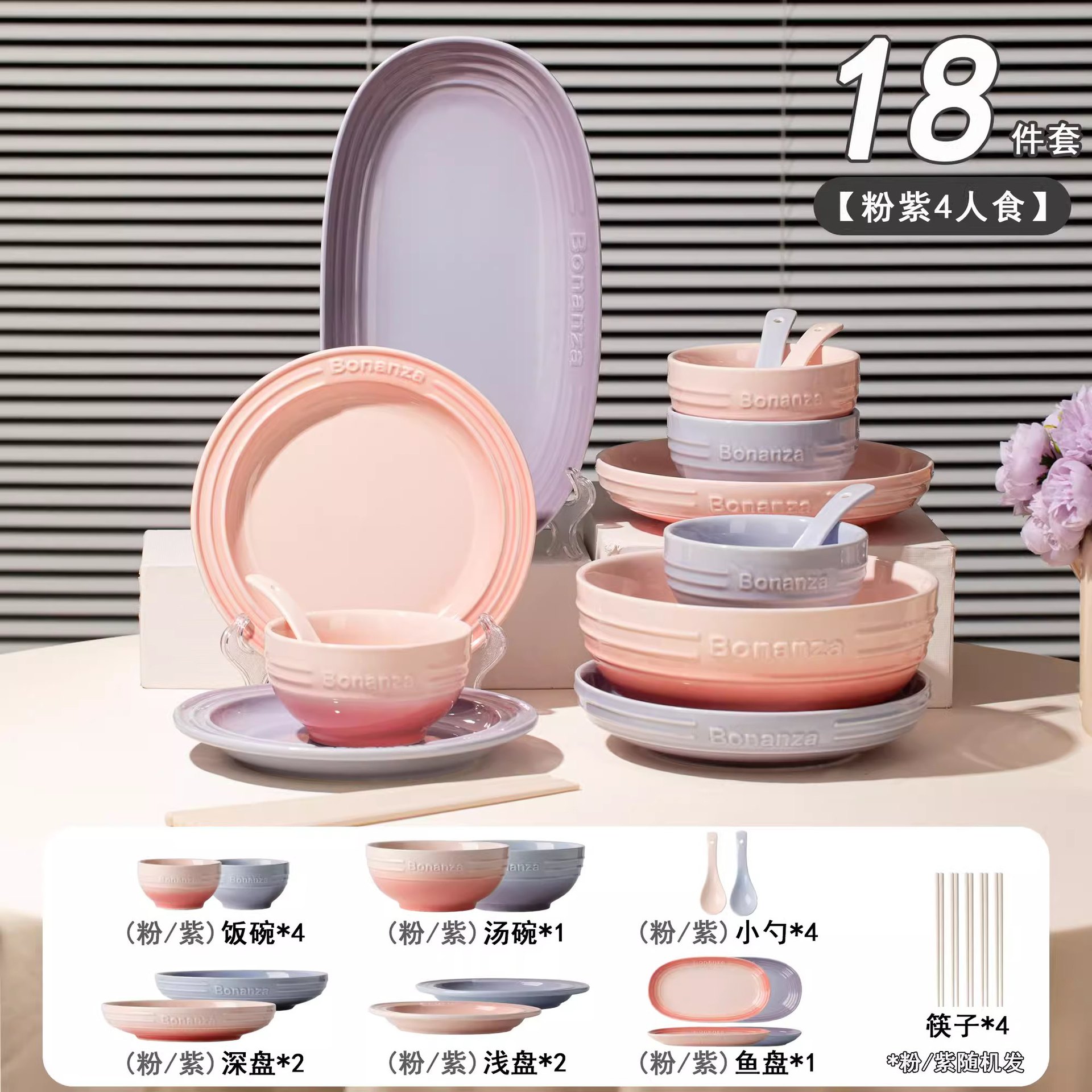 cherry blossom pink taro purple-mix-4 people 18-piece set