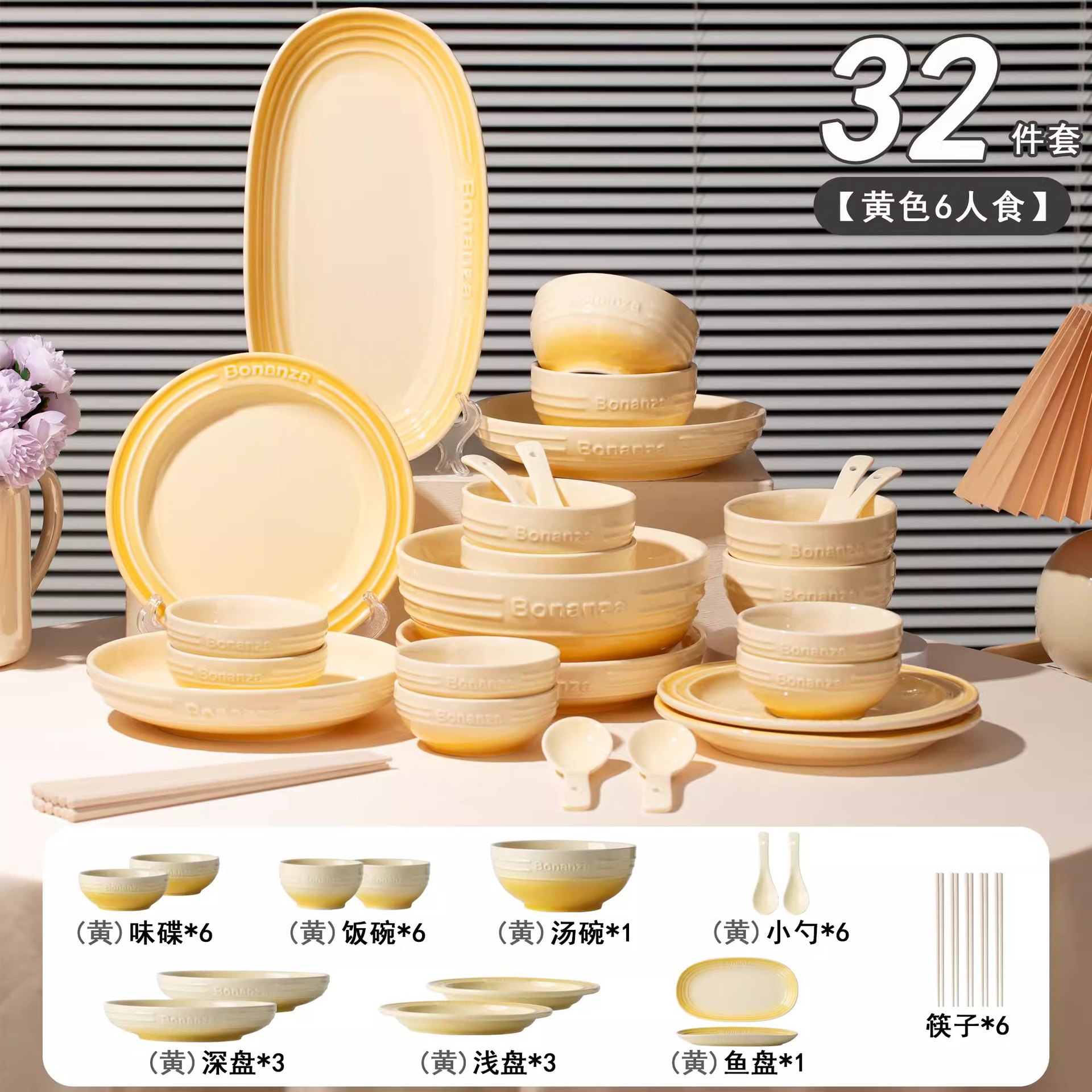 goose down yellow-6-person food 32-piece set