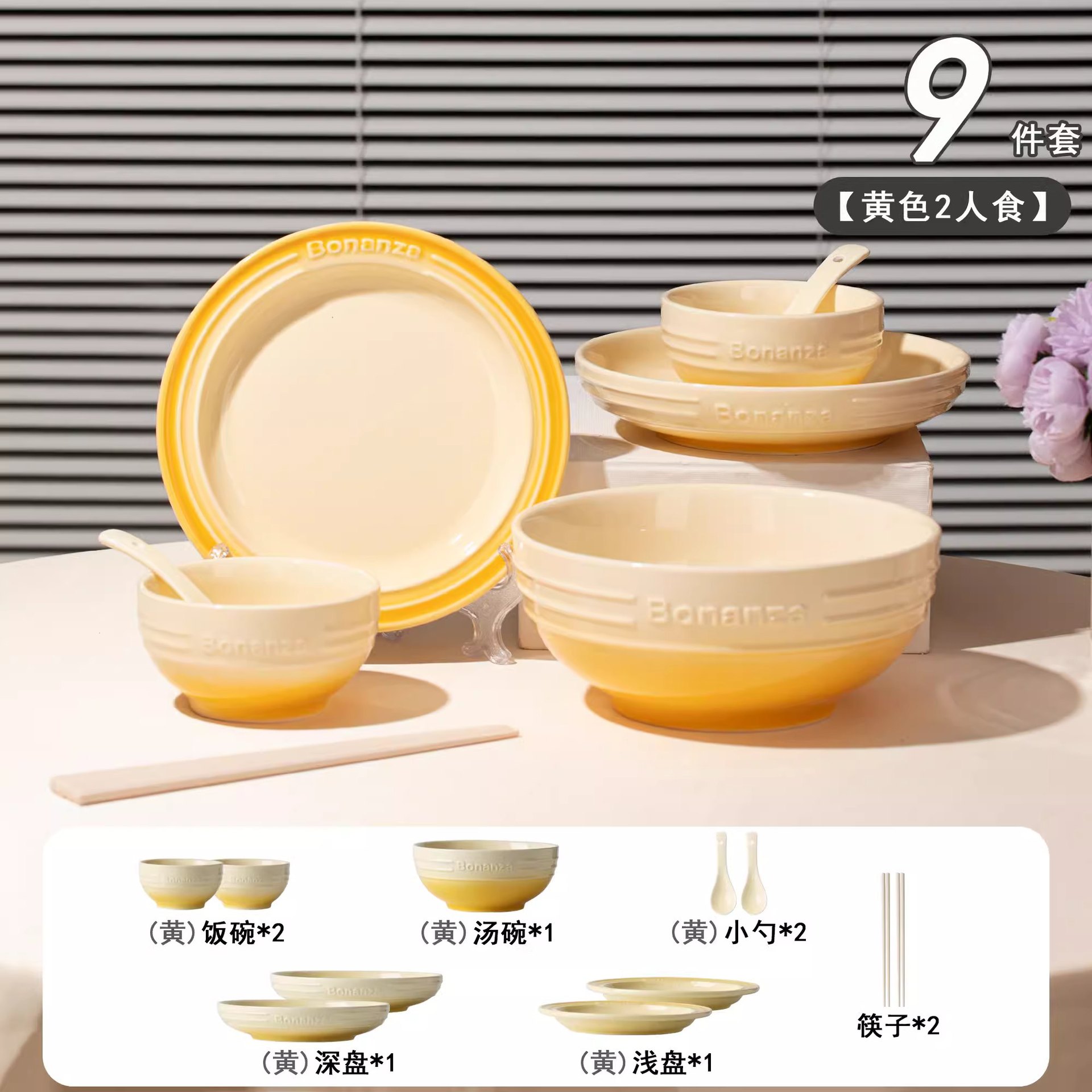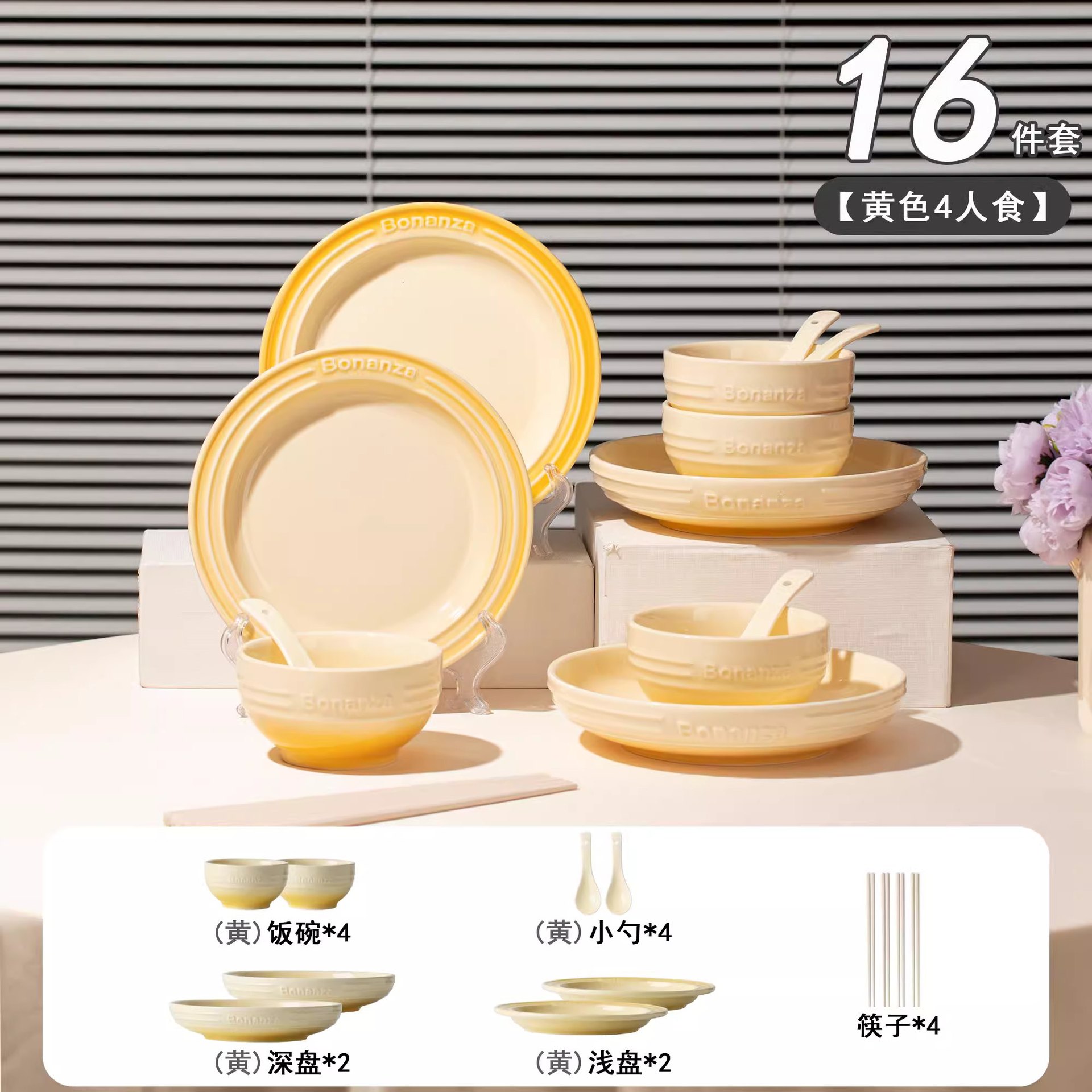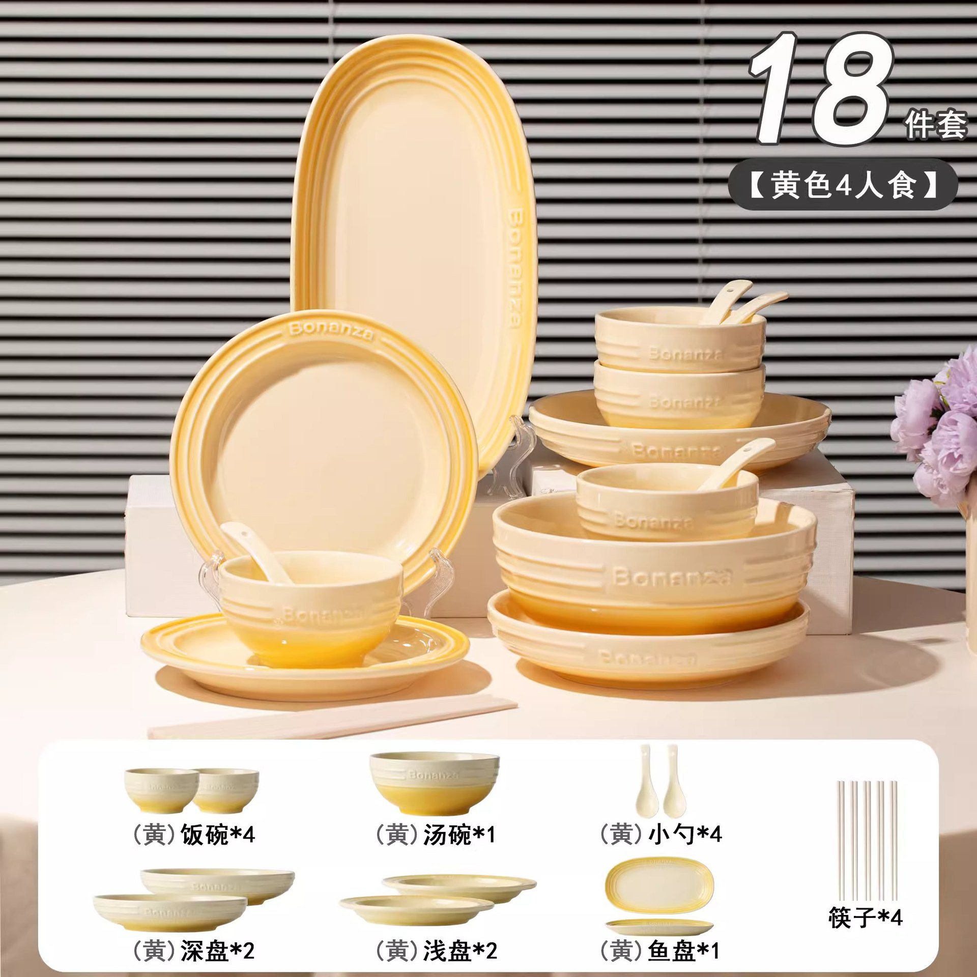 goose down yellow-4-person food 18-piece set