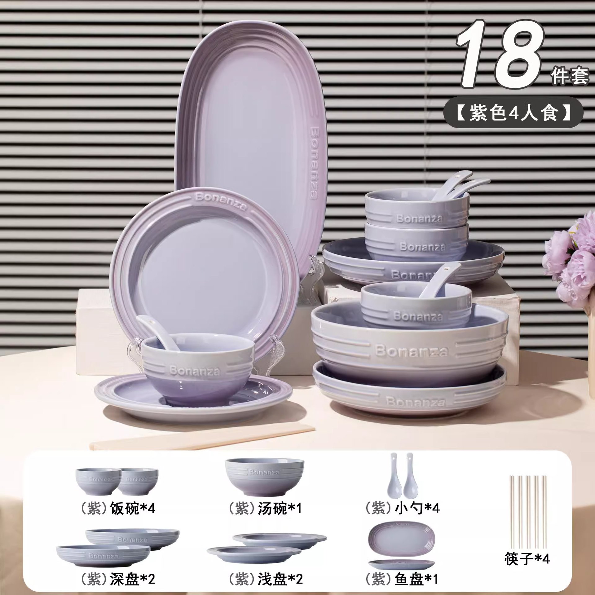 taro purple-18-piece set for 4 people