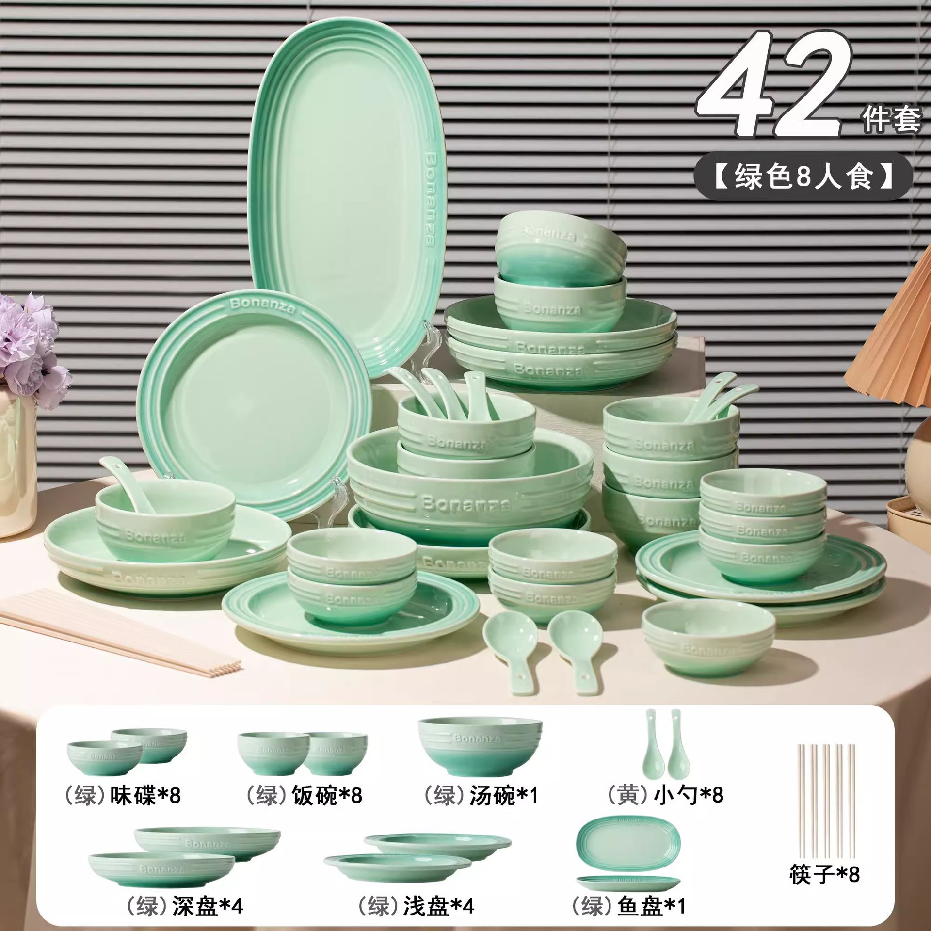 peacock green-8 people food 42-piece set