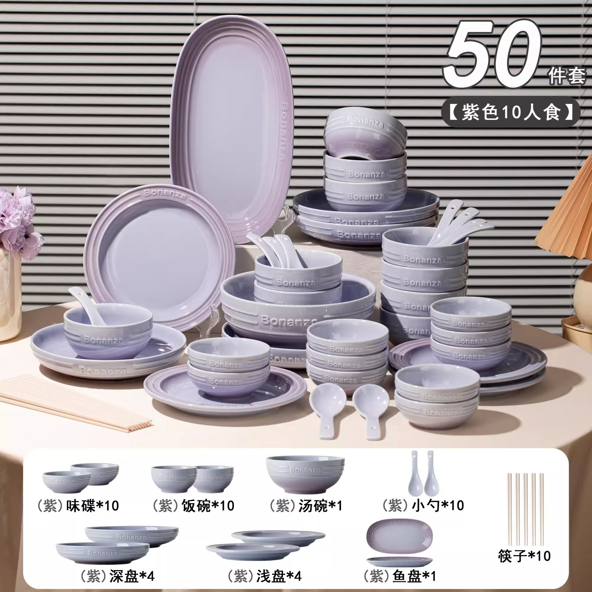 taro purple-50-piece set for 10 people