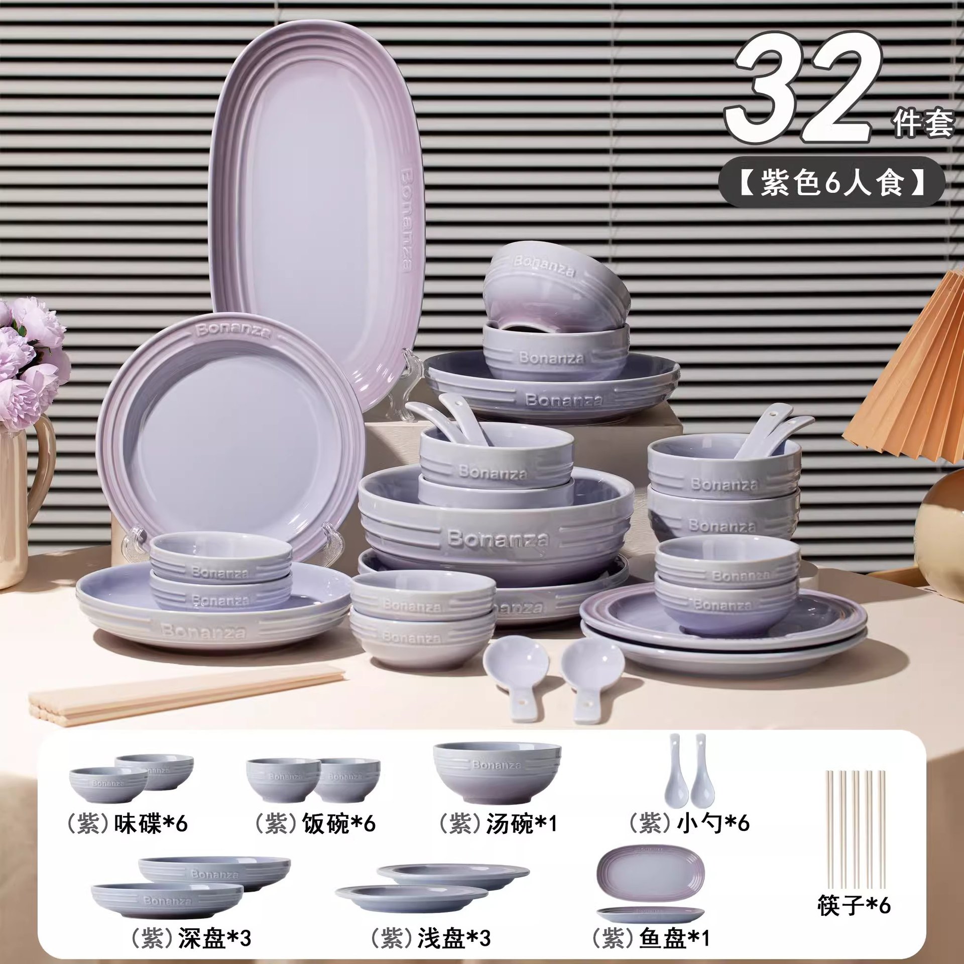 taro purple-6-person food 32-piece set
