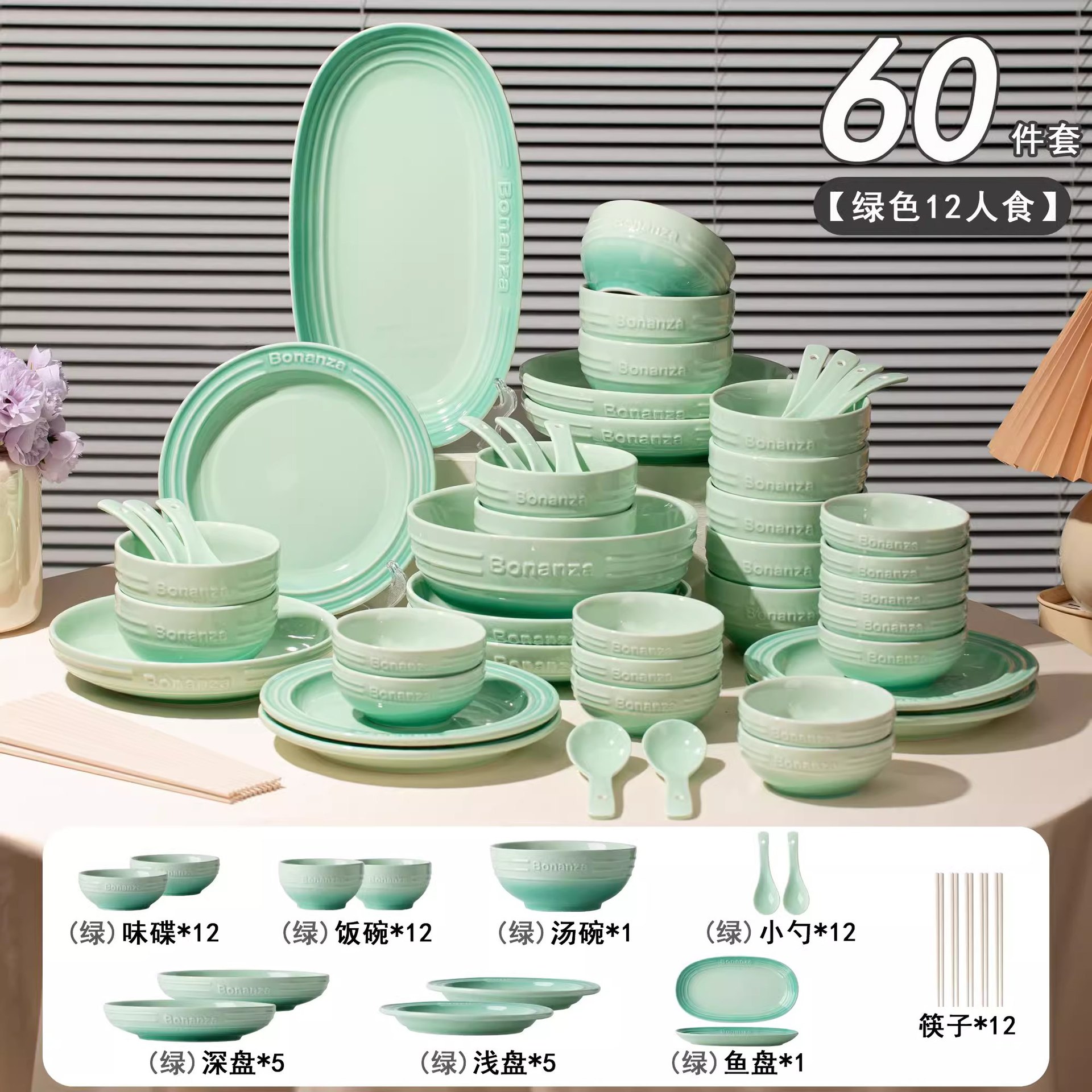 peacock green-60-piece set for 12 people