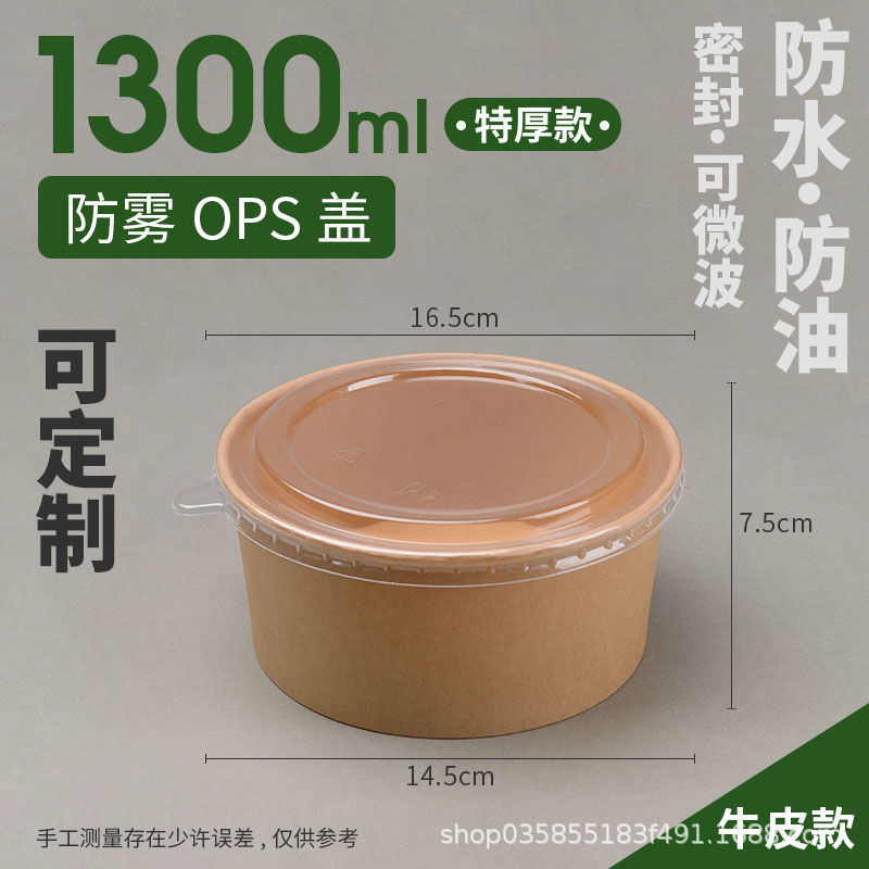 1300ml kraft paper bowl + cover [white background]]