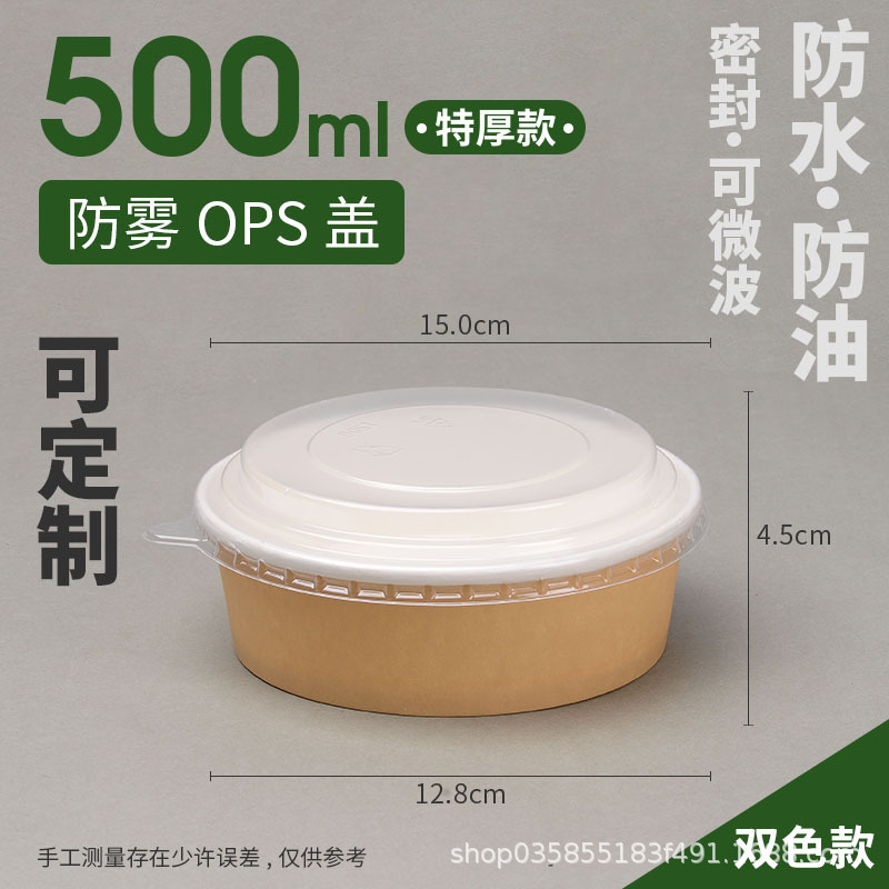 500ml kraft paper bowl + cover [white background]]